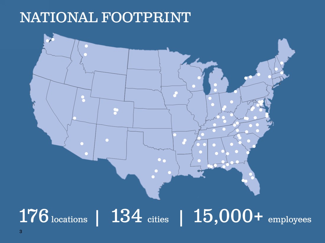 NATIONAL FOOTPRINT 3 176 locations | 134 cities | 15,000+ employees