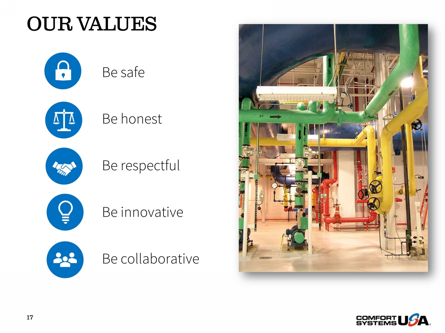 17 Be safe Be honest Be respectful Be innovative Be collaborative OUR VALUES