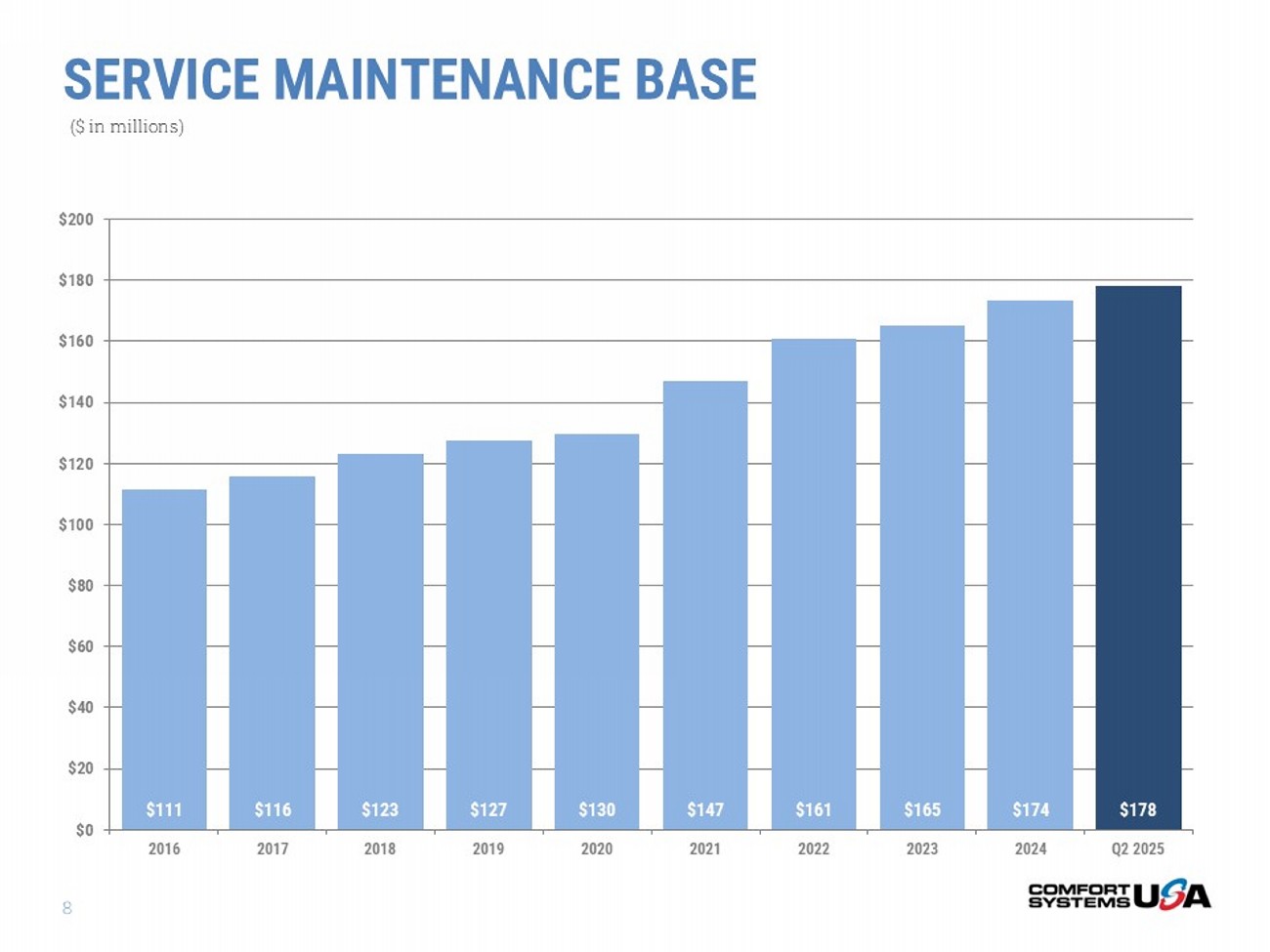 BACKLOG 7 $763 $948 $1,166 $1,602 $1,511 $2,312 $4,064 $5,157 $5,994 $8,124 $- $1,000 $2,000 $3,000 $4,000 $5,000 $6,000 $7,000 $8,000 $9,000 2016 2017 2018 2019 2020 2021 2022 2023 2024 Q2 2025 ($ in millions)