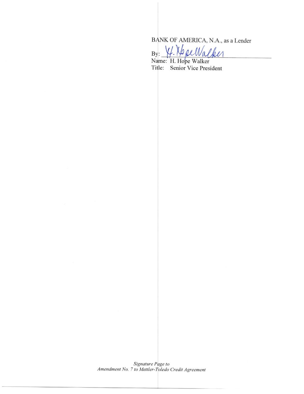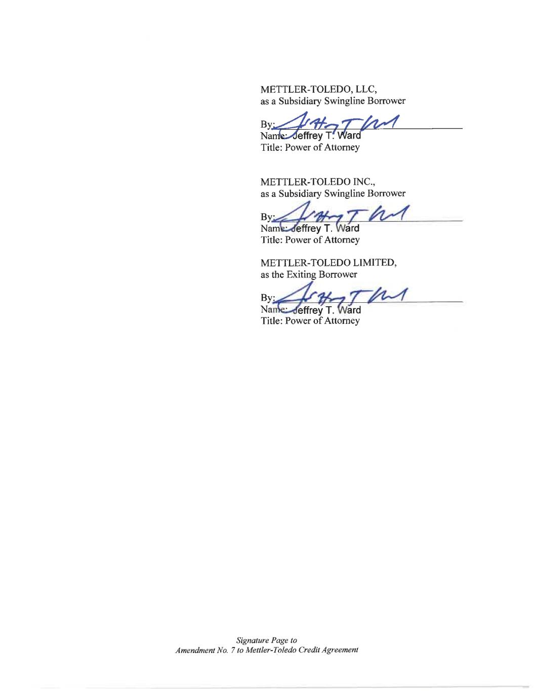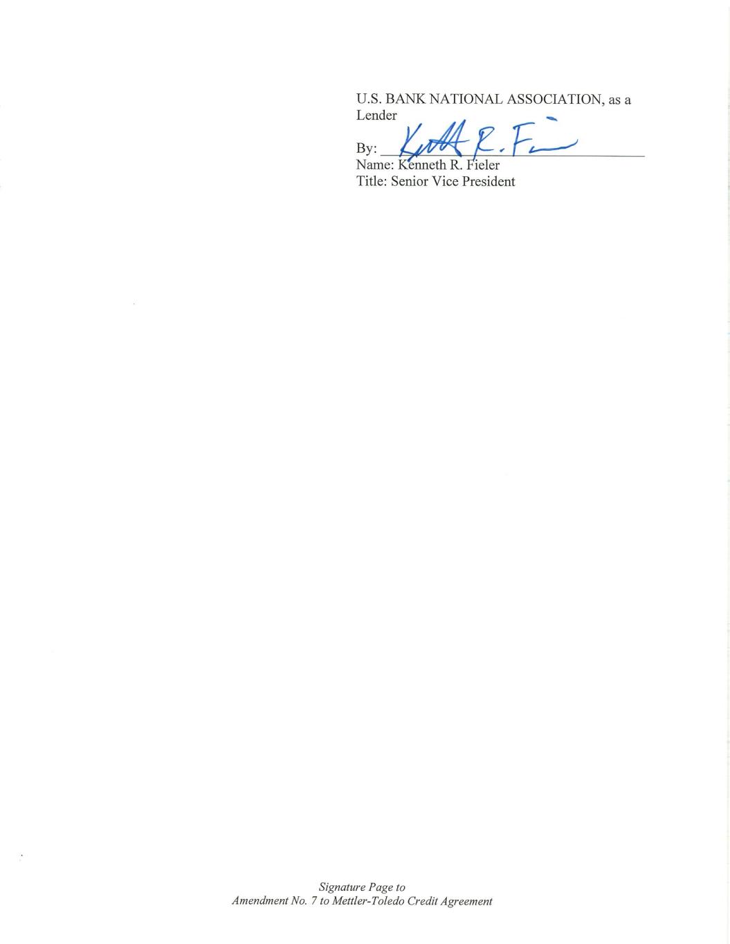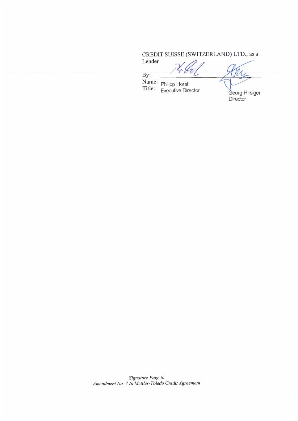Signature Page to Amendment No. 7 to Mettler-Toledo Credit Agreement JPMORGAN CHASE BANK, N.A., as Administrative Agent and a Lender By: _____________________________________ Name: Gregory T. Martin Title: Executive Director