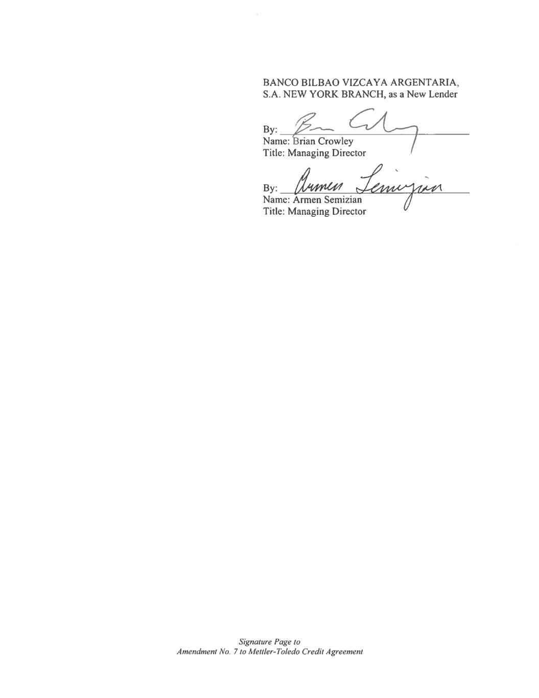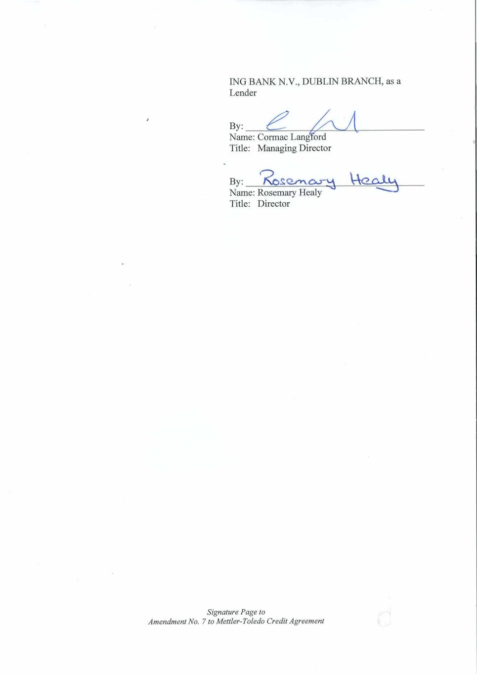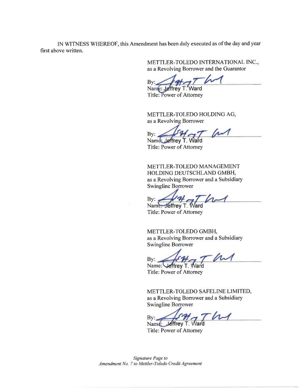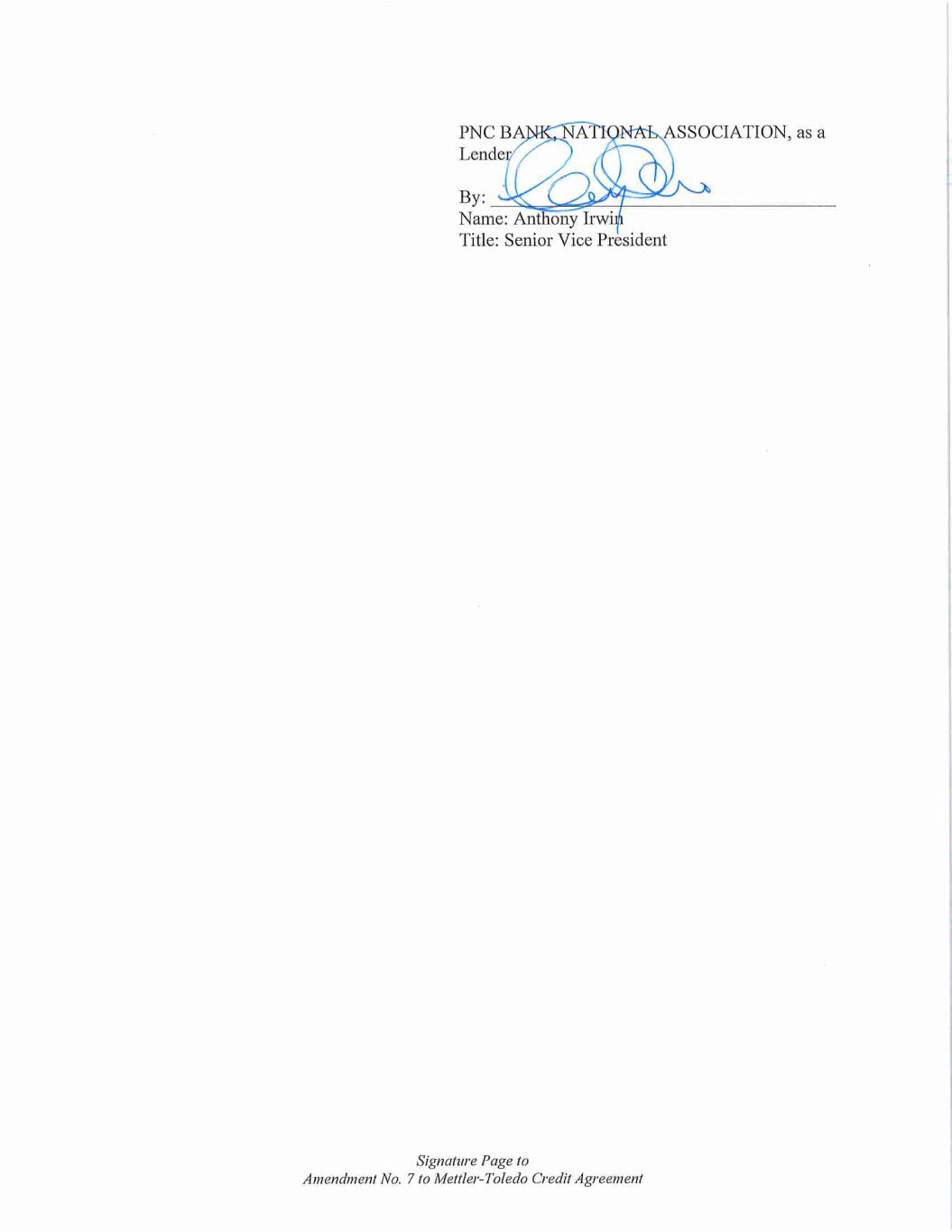 Signature Page to Amendment No. 7 to Mettler-Toledo Credit Agreement JPMORGAN CHASE BANK, N.A., as Administrative Agent and a Lender By: _____________________________________ Name: Gregory T. Martin Title: Executive Director