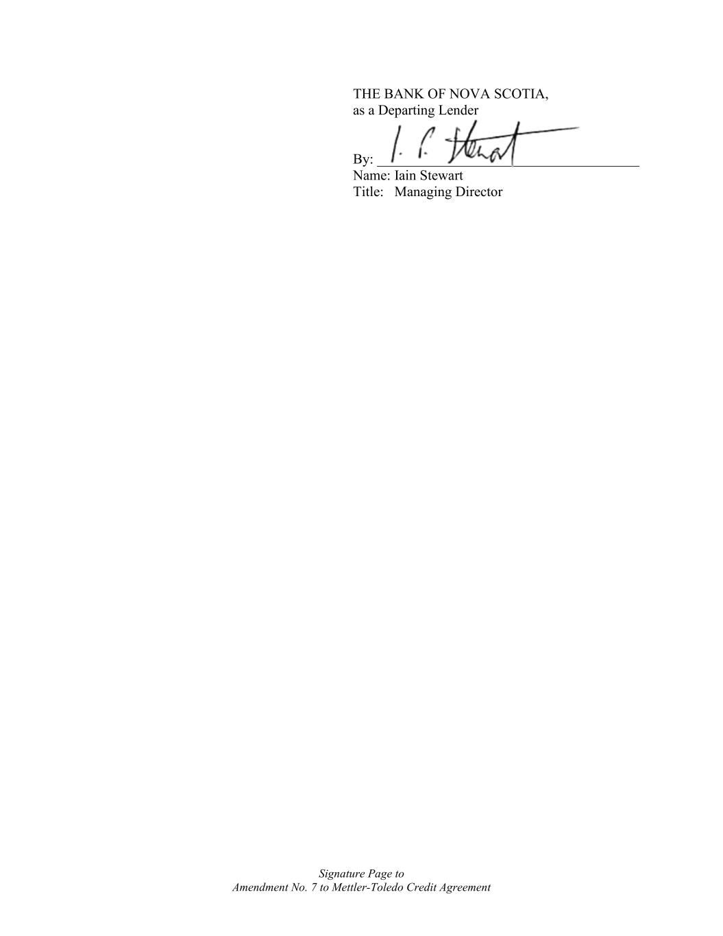 Signature Page to Amendment No. 7 to Mettler-Toledo Credit Agreement THE BANK OF NOVA SCOTIA, as a Departing Lender By: _____________________________________ Name: Iain Stewart Title: Managing Director
