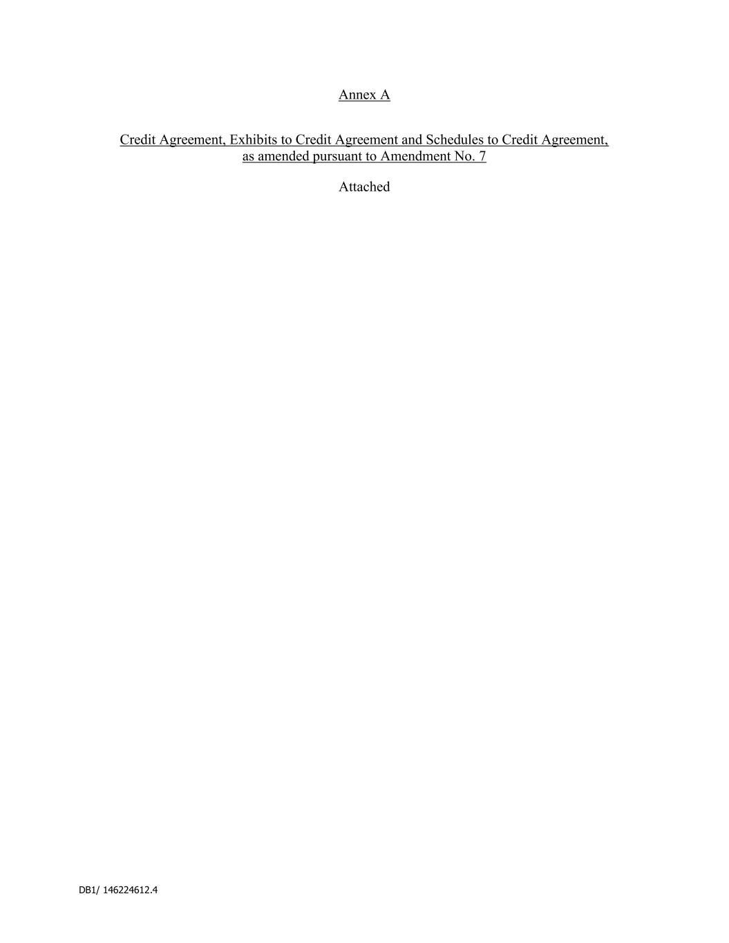 DB1/ 146224612.4 Annex A Credit Agreement, Exhibits to Credit Agreement and Schedules to Credit Agreement, as amended pursuant to Amendment No. 7 Attached