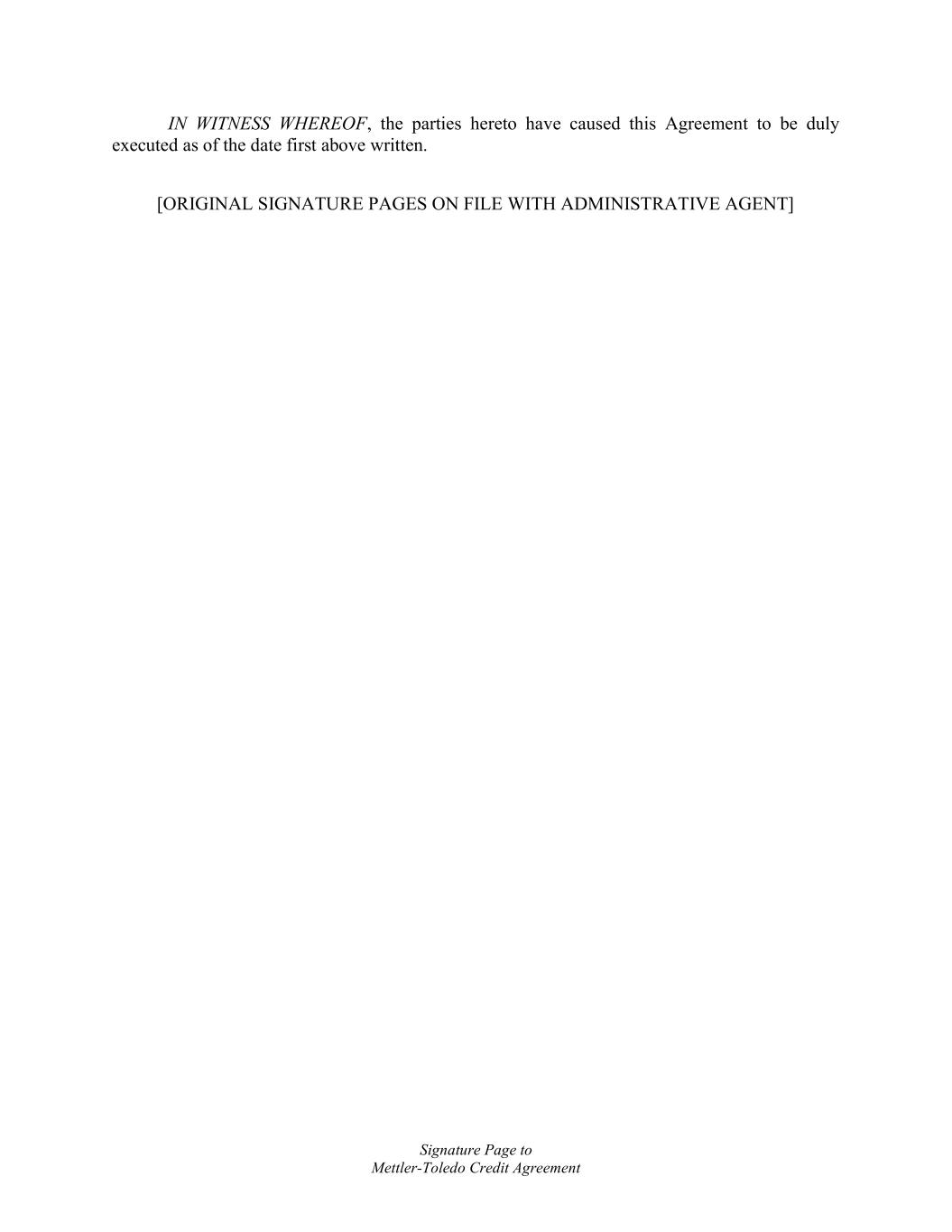 Signature Page to Mettler-Toledo Credit Agreement IN WITNESS WHEREOF, the parties hereto have caused this Agreement to be duly executed as of the date first above written. [ORIGINAL SIGNATURE PAGES ON FILE WITH ADMINISTRATIVE AGENT]
