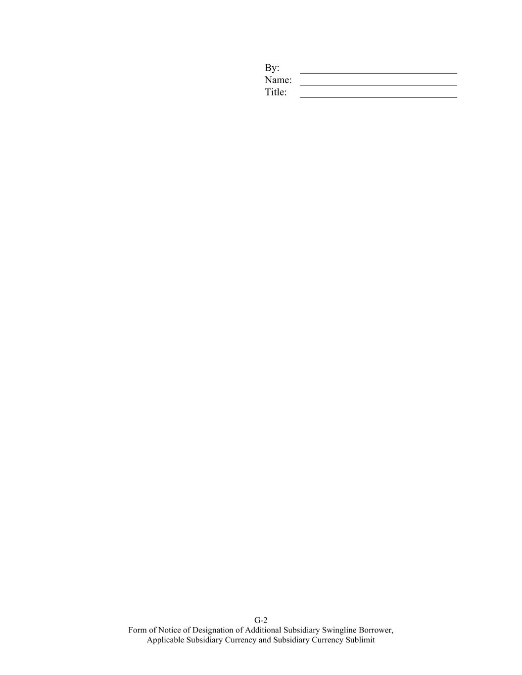 G-2 Form of Notice of Designation of Additional Subsidiary Swingline Borrower, Applicable Subsidiary Currency and Subsidiary Currency Sublimit By: Name: Title: