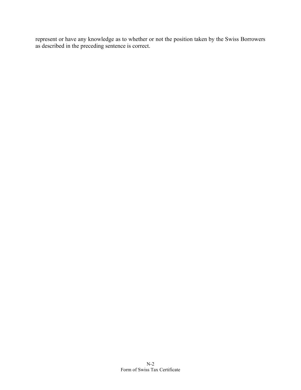 N-2 Form of Swiss Tax Certificate represent or have any knowledge as to whether or not the position taken by the Swiss Borrowers as described in the preceding sentence is correct.