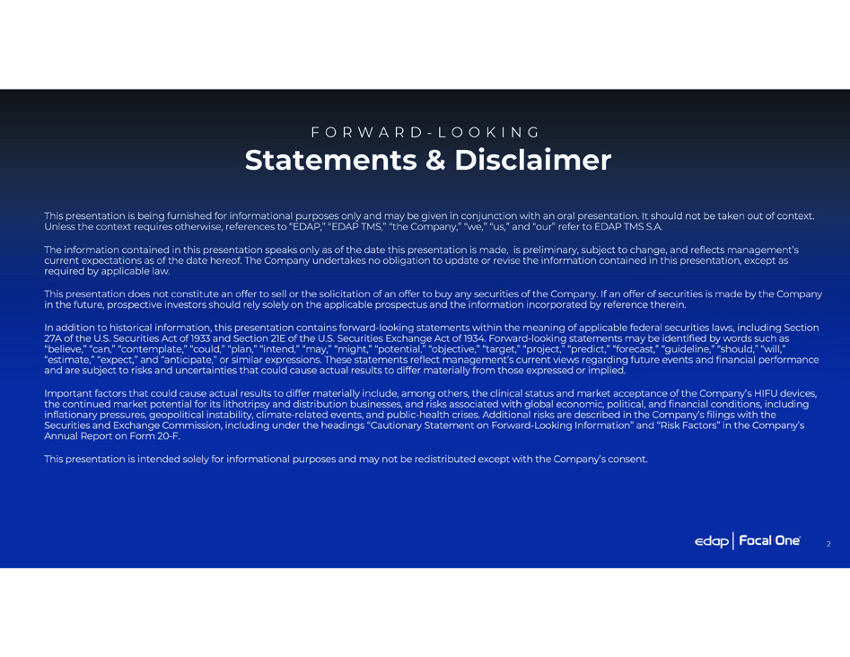 Statements & Disclaimer F O R W A R D - L O O K I N G 2
