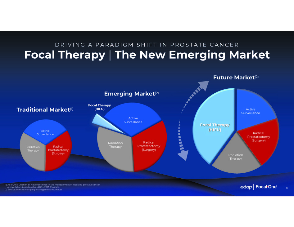 FO C A L O N E ® RO B O T I C HI FU Prostate Cancer Patient Value Equation HIGH LOW HIGH Radiation QUALITY OF LIFE PRESERVATION (Urinary and Sexual Function Outcomes) Focal One Robotic HIFU Active Surveillance Surgery PROVEN EFFICACY (Cancer Control) 7