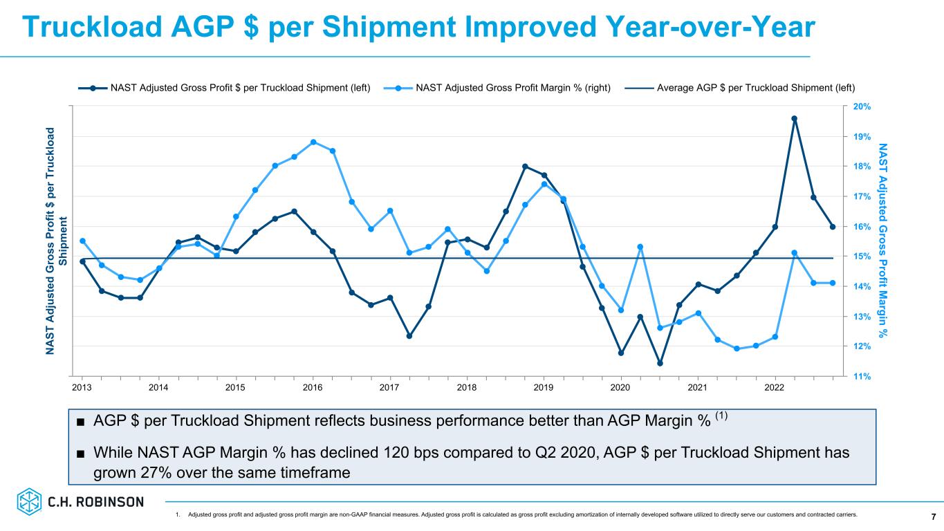 Truckload Price and Cost Change (1)(2)(3) 6 Truckload Q4 Volume(2)(4) -4.0 % Pricing(1)(2)(3) -21.0 % Cost(1)(2)(3) -24.0 % Adjusted Gross Profit(4) +2.0 % 1. Price and cost change represents YoY change for North America truckload shipments across all segments. 2. Growth rates are rounded to the nearest 0.5 percent. ■ 65% / 35% truckload contractual / transactional volume mix, up from 55% / 45% in Q4 last year ■ Average routing guide depth of 1.2 in Managed Services business vs. 1.7 in Q4 last year 3. Pricing and cost measures exclude fuel surcharges and costs. 4. Truckload volume and adjusted gross profit growth represents YoY change for NAST truckload. Yo Y % C ha ng e in P ric e an d C os t YoY Price Change YoY Cost Change 2016 2017 2018 2019 2020 2021 2022 -30% -20% -10% 0% 10% 20% 30% 40% 50%