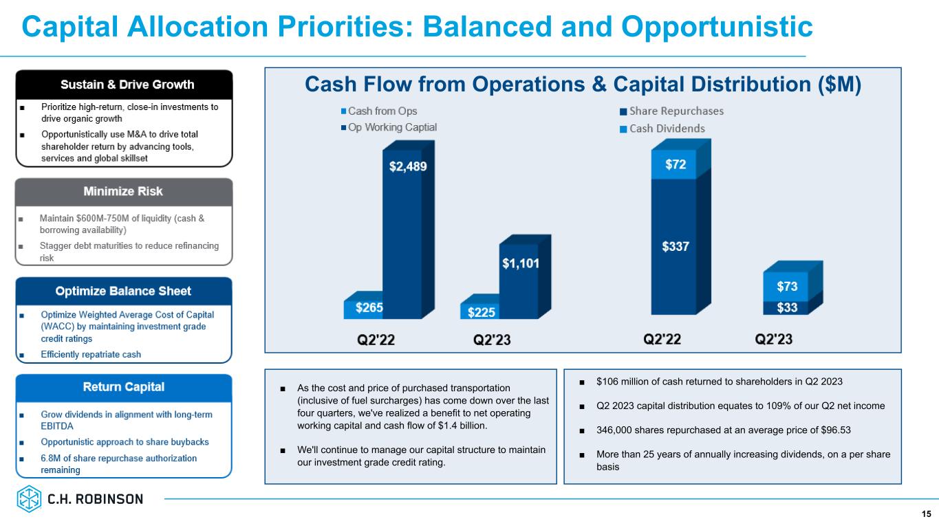 Pillars of Our Customer Promise ■ Diversified, global suite of servicesTM - we can reliably meet all logistics services needs today and in the future ■ An information advantage driving smarter solutionsTM and better outcomes through our experience, data and scale ■ Solutions delivered through people you can rely onTM as an extension of your team ■ Technology built by and for supply chain expertsTM - tailored, market-leading solutions that drive better supply chain outcomes 14 Best-in-class solutions delivered through a global network of experts you can rely on