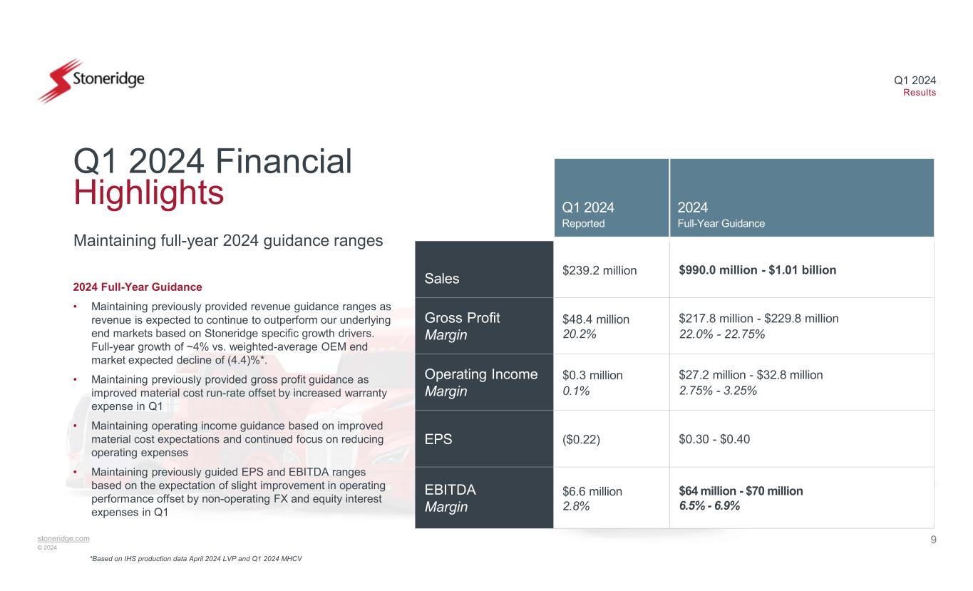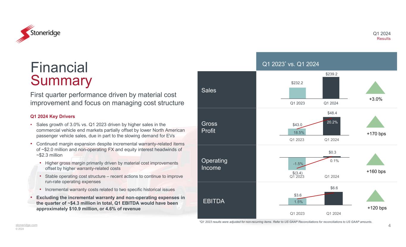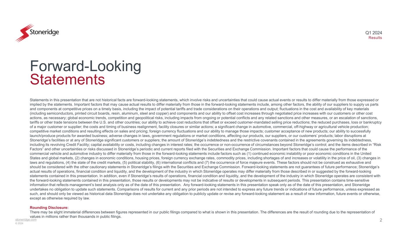 stoneridge.com © 2024 Q1 2024 Results May 2, 2024 Exhibit 99.2