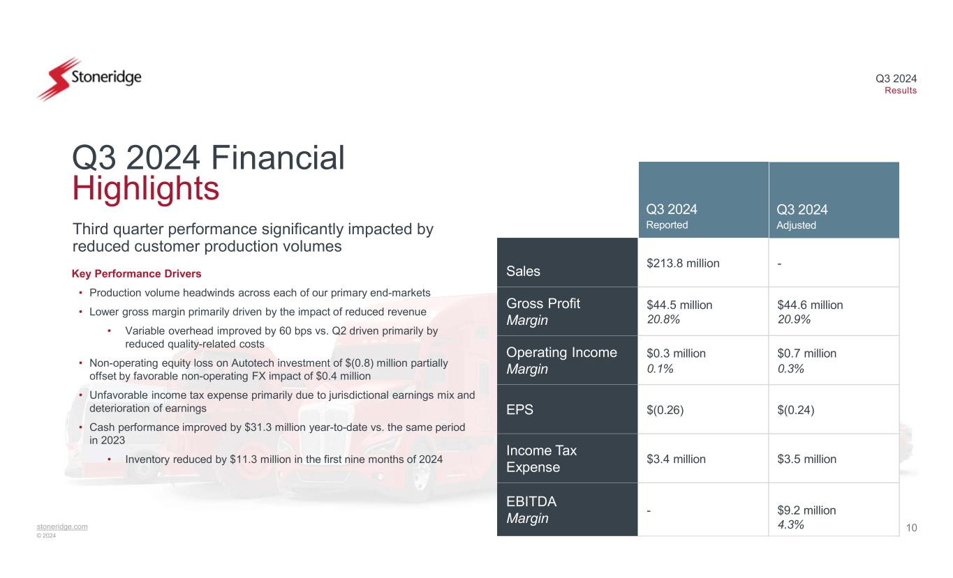 stoneridge.com © 2024 Q3 2024 Results October 31, 2024 Exhibit 99.2