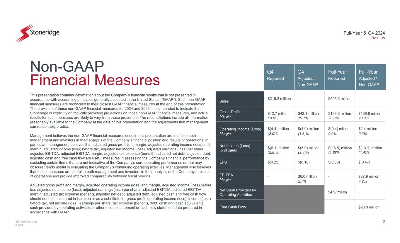 stoneridge.com © 2025 Full-Year & Q4 2024 Results February 27, 2025 Exhibit 99.2