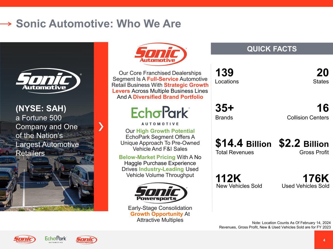 Sonic Automotive Investor Presentation Fourth Quarter 2023 Updated February 14, 2024