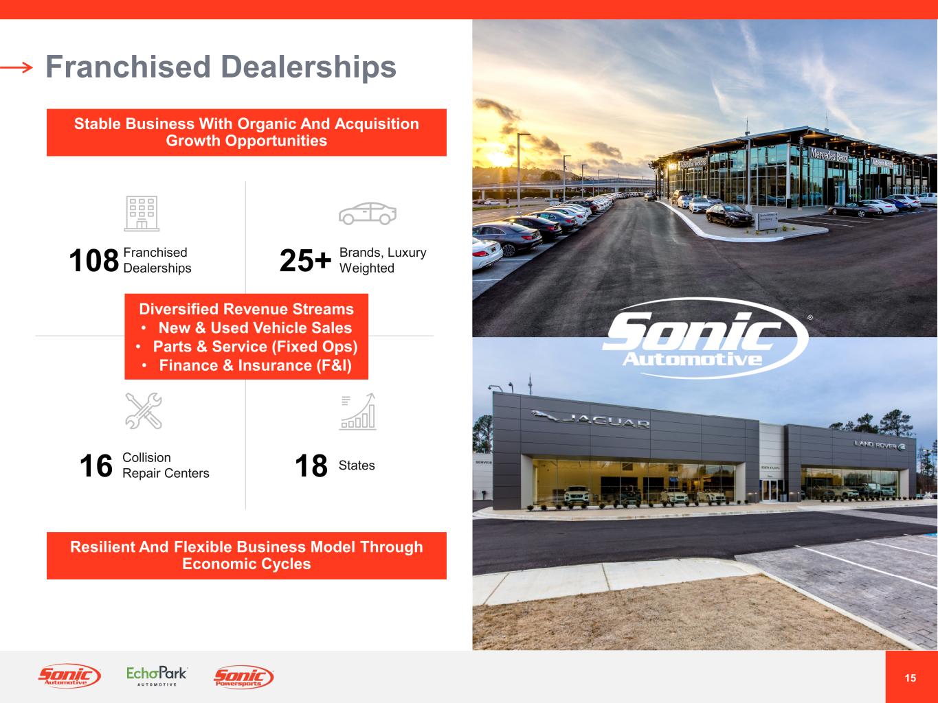 16 Franchised Dealerships – Geographic Footprint Diversified Geographic Market Platform 108 Stores, 25+ Brands, 16 Collision Repair Centers