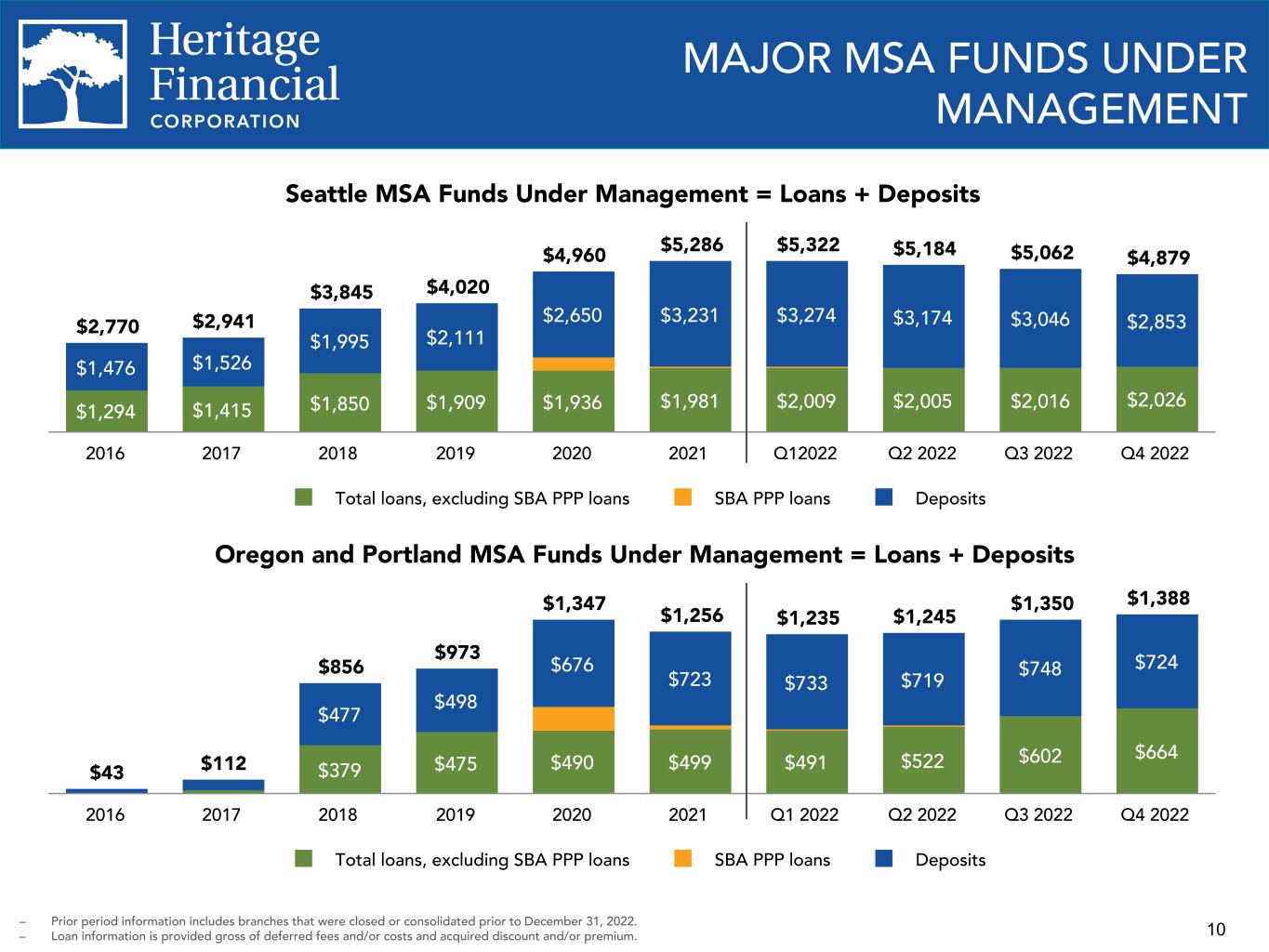 10 MAJOR MSA FUNDS UNDER MANAGEMENT Seattle MSA Funds Under Management = Loans + Deposits $2,770 $2,941 $3,845 $4,020 $4,960 $5,286 $5,322 $5,184 $5,062 $4,879 $1,294 $1,415 $1,850 $1,909 $1,936 $1,981 $2,009 $2,005 $2,016 $2,026 $1,476 $1,526 $1,995 $2,111 $2,650 $3,231 $3,274 $3,174 $3,046 $2,853 Total loans, excluding SBA PPP loans SBA PPP loans Deposits 2016 2017 2018 2019 2020 2021 Q12022 Q2 2022 Q3 2022 Q4 2022 – Prior period information includes branches that were closed or consolidated prior to December 31, 2022. – Loan information is provided gross of deferred fees and/or costs and acquired discount and/or premium. Oregon and Portland MSA Funds Under Management = Loans + Deposits $43 $112 $856 $973 $1,347 $1,256 $1,235 $1,245 $1,350 $1,388 $379 $475 $490 $499 $491 $522 $602 $664 $477 $498 $676 $723 $733 $719 $748 $724 Total loans, excluding SBA PPP loans SBA PPP loans Deposits 2016 2017 2018 2019 2020 2021 Q1 2022 Q2 2022 Q3 2022 Q4 2022