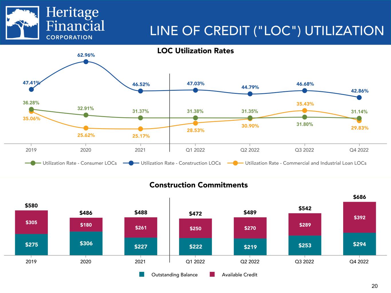 19 New Commitments Originated $23 $22 $43 $29 $21 $45 $75 $61 $47 $66 $329 $222 $283 $277 $329 Consumer Residential Commercial, excl. SBA PPP Q4 2021 Q1 2022 Q2 2022 Q3 2022 Q4 2022 LOAN PRODUCTION – Q1 2022, Q2 2022, Q3 2022, and Q4 2022 residential commitments originated include $42.2 million, $27.3 million, $29.0 million and $40.5 million of purchased loans, respectively.