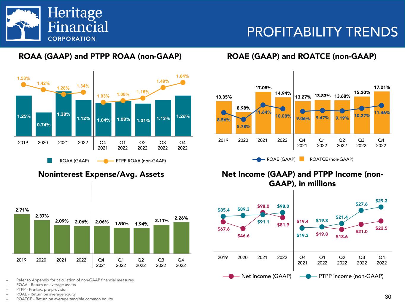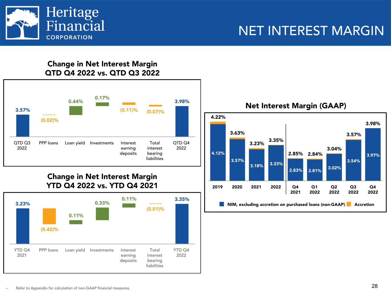 28 3.23% (0.42)% 0.11% 0.33% 0.11% (0.01)% 3.35% YTD Q4 2021 PPP loans Loan yield Investments Interest earning deposits Total interest bearing liabilities YTD Q4 2022 4.22% 3.63% 3.23% 3.35% 2.85% 2.84% 3.04% 3.57% 3.98% 4.12% 3.57% 3.18% 3.33% 2.83% 2.81% 3.02% 3.54% 3.97% NIM, excluding accretion on purchased loans (non-GAAP) Accretion 2019 2020 2021 2022 Q4 2021 Q1 2022 Q2 2022 Q3 2022 Q4 2022 NET INTEREST MARGIN – Refer to Appendix for calculation of non-GAAP financial measures. 3.57% (0.02)% 0.44% 0.17% (0.11)% (0.07)% 3.98% QTD Q3 2022 PPP loans Loan yield Investments Interest earning deposits Total interest bearing liabilities QTD Q4 2022 Change in Net Interest Margin QTD Q4 2022 vs. QTD Q3 2022 Change in Net Interest Margin YTD Q4 2022 vs. YTD Q4 2021 Net Interest Margin (GAAP)