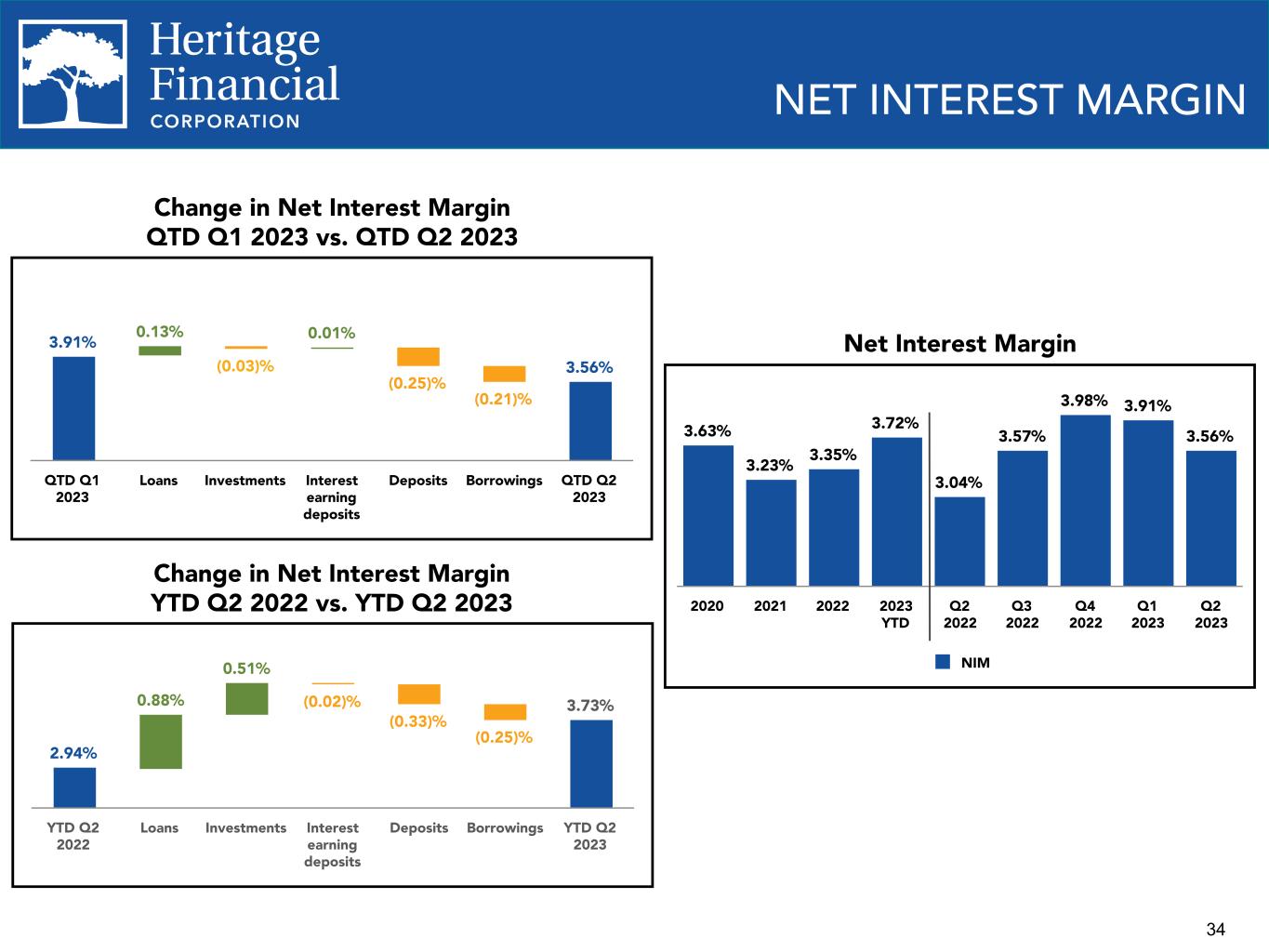 34 2.94% 0.88% 0.51% (0.02)% (0.33)% (0.25)% 3.73% YTD Q2 2022 Loans Investments Interest earning deposits Deposits Borrowings YTD Q2 2023 3.63% 3.23% 3.35% 3.72% 3.04% 3.57% 3.98% 3.91% 3.56% NIM 2020 2021 2022 2023 YTD Q2 2022 Q3 2022 Q4 2022 Q1 2023 Q2 2023 NET INTEREST MARGIN Change in Net Interest Margin QTD Q1 2023 vs. QTD Q2 2023 Change in Net Interest Margin YTD Q2 2022 vs. YTD Q2 2023 Net Interest Margin3.91% 0.13% (0.03)% 0.01% (0.25)% (0.21)% 3.56% QTD Q1 2023 Loans Investments Interest earning deposits Deposits Borrowings QTD Q2 2023