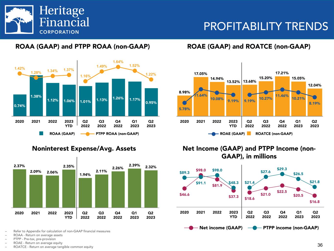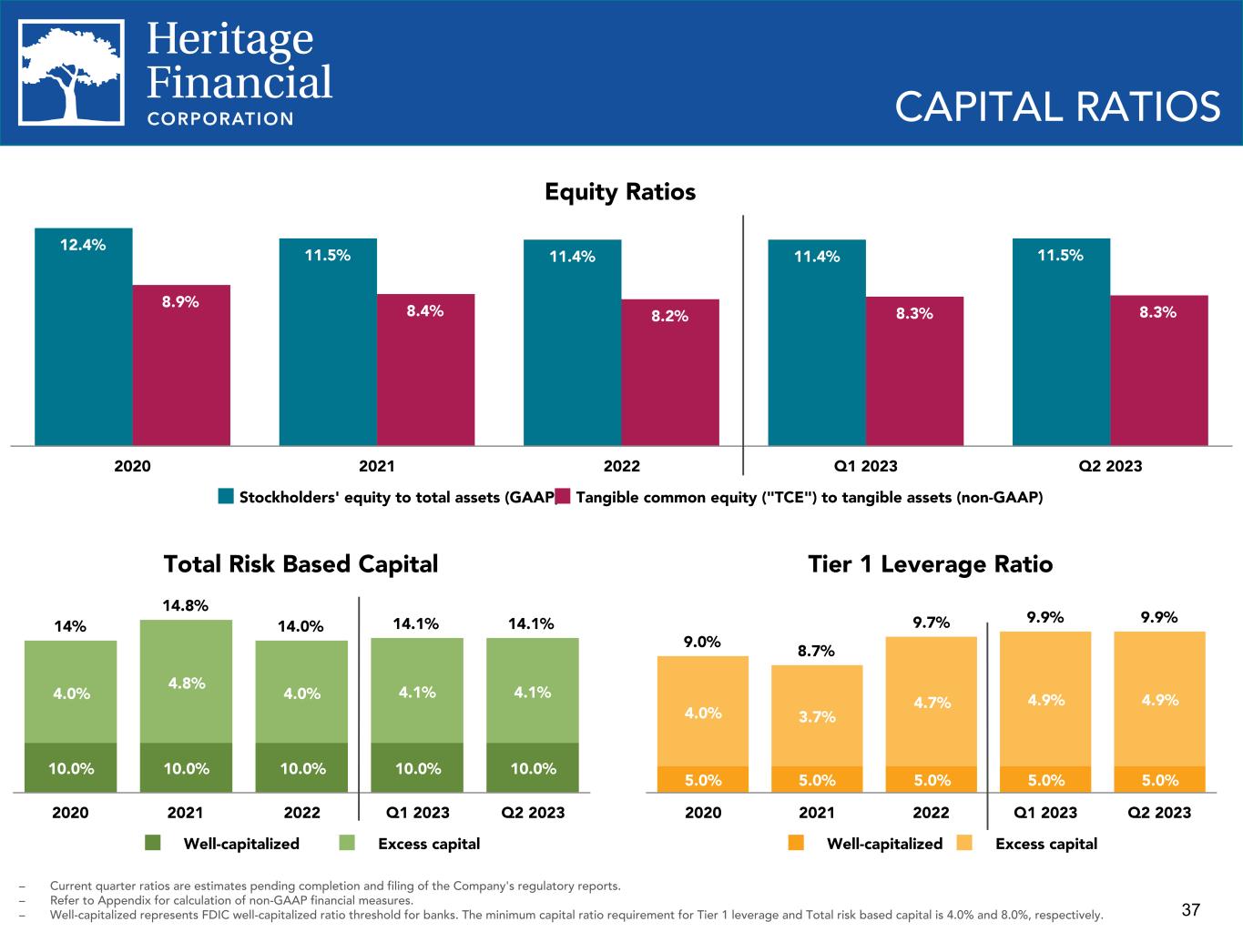 36 $46.6 $98.0 $81.9 $37.3 $89.3 $91.1 $98.0 $48.3 Net income (GAAP) PTPP income (non-GAAP) 2020 2021 2022 2023 YTD Q2 2022 Q3 2022 Q4 2022 Q1 2023 Q2 2023 $18.6 $21.0 $22.5 $20.5 $16.8 $21.4 $27.6 $29.3 $26.5 $21.8 PROFITABILITY TRENDS ROAE (GAAP) and ROATCE (non-GAAP) Noninterest Expense/Avg. Assets ROAA (GAAP) and PTPP ROAA (non-GAAP) 0.74% 1.38% 1.12% 1.06% 1.01% 1.13% 1.26% 1.17% 0.95% 1.42% 1.28% 1.34% 1.37% 1.16% 1.49% 1.64% 1.52% 1.22% ROAA (GAAP) PTPP ROAA (non-GAAP) 2020 2021 2022 2023 YTD Q2 2022 Q3 2022 Q4 2022 Q1 2023 Q2 2023 Net Income (GAAP) and PTPP Income (non- GAAP), in millions 8.98% 17.05% 14.94% 13.52% 13.68% 15.20% 17.21% 15.05% 12.04% 5.78% 11.64% 10.08% 9.19% 9.19% 10.27% 11.46% 10.21% 8.19% ROAE (GAAP) ROATCE (non-GAAP) 2020 2021 2022 2023 YTD Q2 2022 Q3 2022 Q4 2022 Q1 2023 Q2 2023 2.37% 2.09% 2.06% 2.35% 1.94% 2.11% 2.26% 2.39% 2.32% 2020 2021 2022 2023 YTD Q2 2022 Q3 2022 Q4 2022 Q1 2023 Q2 2023 – Refer to Appendix for calculation of non-GAAP financial measures – ROAA - Return on average assets – PTPP - Pre-tax, pre-provision – ROAE - Return on average equity – ROATCE - Return on average tangible common equity