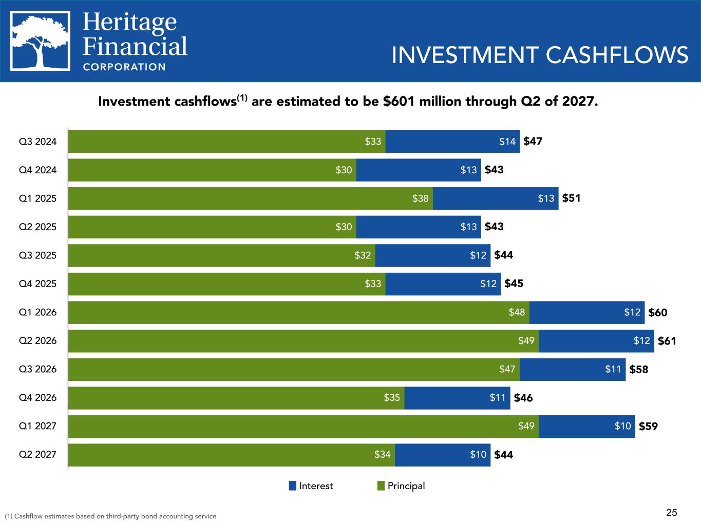 25 $47 $43 $51 $43 $44 $45 $60 $61 $58 $46 $59 $44 $33 $30 $38 $30 $32 $33 $48 $49 $47 $35 $49 $34 $14 $13 $13 $13 $12 $12 $12 $12 $11 $11 $10 $10 Interest Principal Q3 2024 Q4 2024 Q1 2025 Q2 2025 Q3 2025 Q4 2025 Q1 2026 Q2 2026 Q3 2026 Q4 2026 Q1 2027 Q2 2027 INVESTMENT CASHFLOWS Investment cashflows(1) are estimated to be $601 million through Q2 of 2027. (1) Cashflow estimates based on third-party bond accounting service