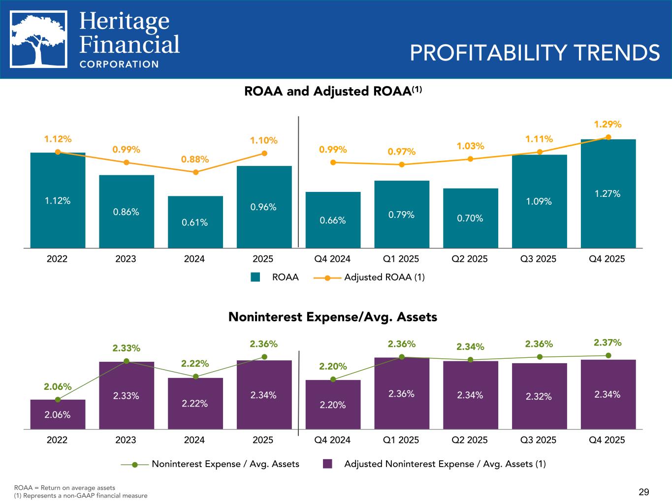 2 This presentation contains “forward-looking statements” within the meaning of the Private Securities Litigation Reform Act of 1995. Such statements often include words such as "believes," "expects," "anticipates," "estimates," “forecasts,” "intends," “plans,” “targets,” “potentially,” “probably,” “projects,” “outlook” or similar expressions or future or conditional verbs such as “may,” "will," “should,” "would," and "could," as well as the negative of such words. Forward-looking statements are not historical facts but instead represent management's current expectations and forecasts regarding future events, many of which are inherently uncertain and outside of our control. Actual results may differ, possibly materially, from those currently expected or projected in these forward-looking statements. Factors that could cause our actual results to differ materially from those described in the forward-looking statements include, but are not limited to, the following: • potential adverse impacts to economic conditions nationally or in our local market areas, other markets where Heritage Financial Corporation (the "Company") and its subsidiaries have lending relationships, or other aspects of the Company’s business operations or financial markets, including, without limitation, as a result of credit quality deterioration, pronounced and sustained reductions in real estate market values, employment levels, labor shortages and a potential recession or slowed economic growth; • changes in the interest rate environment, which could adversely affect our revenues and expenses, the value of assets and obligations, and the availability and cost of capital and liquidity; • the level and impact of inflation and the current and future monetary policies of the Board of Governors of the Federal Reserve System in response thereto; • legislative or regulatory changes that adversely affect our business, including changes in banking, securities, and tax law, in regulatory policies and principles, or the interpretation and prioritization of such rules and regulations; • effects on the U.S. economy resulting from the threat or implementation of, or changes to existing, policies and executive orders, including tariffs, immigration policy, regulatory and other governmental agencies, DEI and ESG initiatives, consumer protection, foreign policy, and tax regulations; • credit and interest rate risks associated with the Company’s businesses, customers, borrowings, repayment, investment, and deposit practices; • fluctuations in deposits and deposit concentrations; • liquidity issues, including our ability to borrow funds or raise additional capital, if necessary; • fluctuations in the value of our investment securities; • credit risks and risks from concentrations (including by type of geographic area, collateral and industry) within our loan portfolio; • disruptions, security breaches, insider fraud, cybersecurity incidents or other adverse events, failures or interruptions in, or attacks on, our information technology systems or on the third-party vendors who perform critical processing functions for our business, including sophisticated attacks using artificial intelligence and similar tools; • technological changes implemented by us and other parties, including third-party vendors, which may be more difficult to implement or more expensive than anticipated or which may have unforeseen consequences to us and our customers, including the development and implementation of tools incorporating artificial intelligence; • increased competition in the financial services industry from non-banks such as credit unions and financial technology companies, including digital asset service providers; • our ability to adapt successfully to technological changes to compete effectively in the marketplace, including as a result of competition from other commercial banks, mortgage banking firms, credit unions, securities brokerage firms, insurance companies, and financial technology companies; • our ability to implement our organic and acquisition growth strategies, including the pending acquisition of Olympic Bancorp, Inc. (“Olympic”), and our ability to successfully integrate Olympic's customers and operations following the acquisition; • effects of critical accounting policies and judgments, including the use of estimates in determining fair value of certain of our assets, which estimates may prove to be incorrect and result in significant declines in valuation; • the commencement, costs, effects and outcome of litigation and other legal proceedings and regulatory actions against us or to which the Company may become subject; • potential impairment to the goodwill the Company recorded in connection with our past acquisitions, including the pending acquisition of Olympic; • loss of, or inability to attract, key personnel; • our ability to successfully integrate any assets, liabilities, customers, systems, and management personnel we may acquire, including as a result of the acquisition of Olympic, into our operations and our ability to realize related revenue synergies and cost savings within expected time frames or at all, and any goodwill charges related thereto and costs or difficulties relating to integration matters, including but not limited to customer and employee retention, which might be greater than expected; • the effects of climate change, severe weather events, natural disasters, pandemics, epidemics and other public health crises, acts of war or terrorism, foreign relations, and other external events on our business and the businesses of our clients; • the impact of bank failures or adverse developments at other banks and related negative publicity about the banking industry in general on investor and depositor sentiment regarding the stability and liquidity of banks; and • our success at managing and responding to the risks