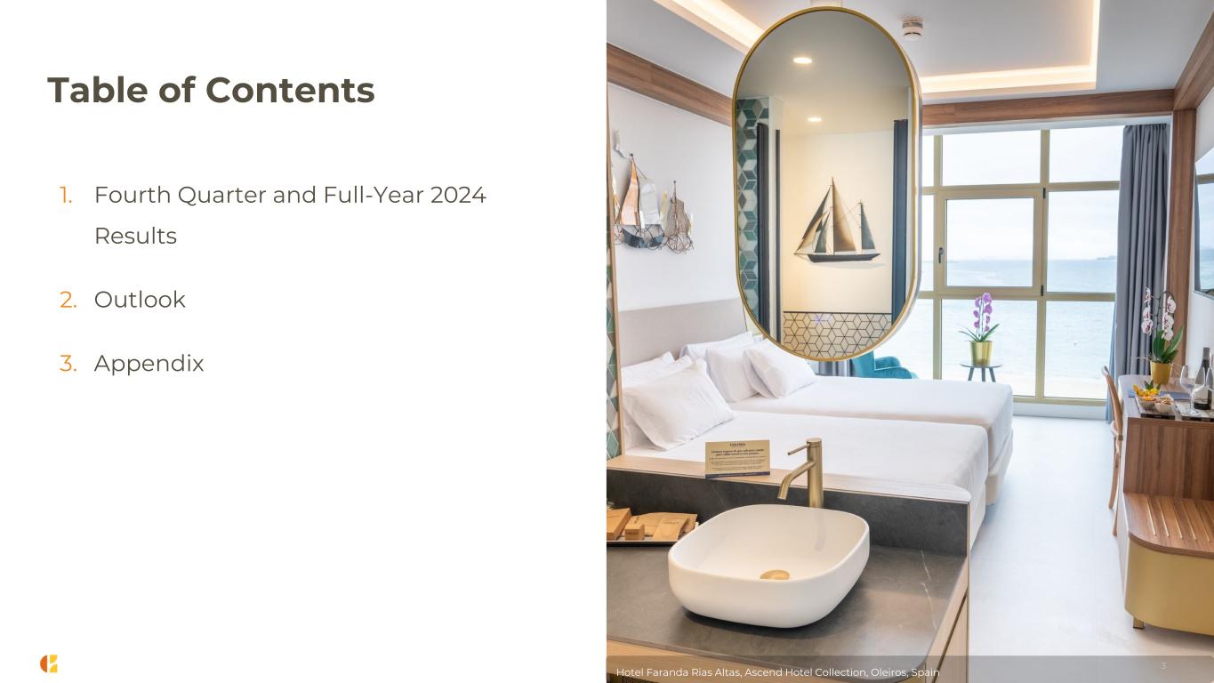 Table of Contents 1. Fourth Quarter and Full-Year 2024 Results 2. Outlook 3. Appendix 3 Hotel Faranda Rias Altas, Ascend Hotel Collection, Oleiros, Spain