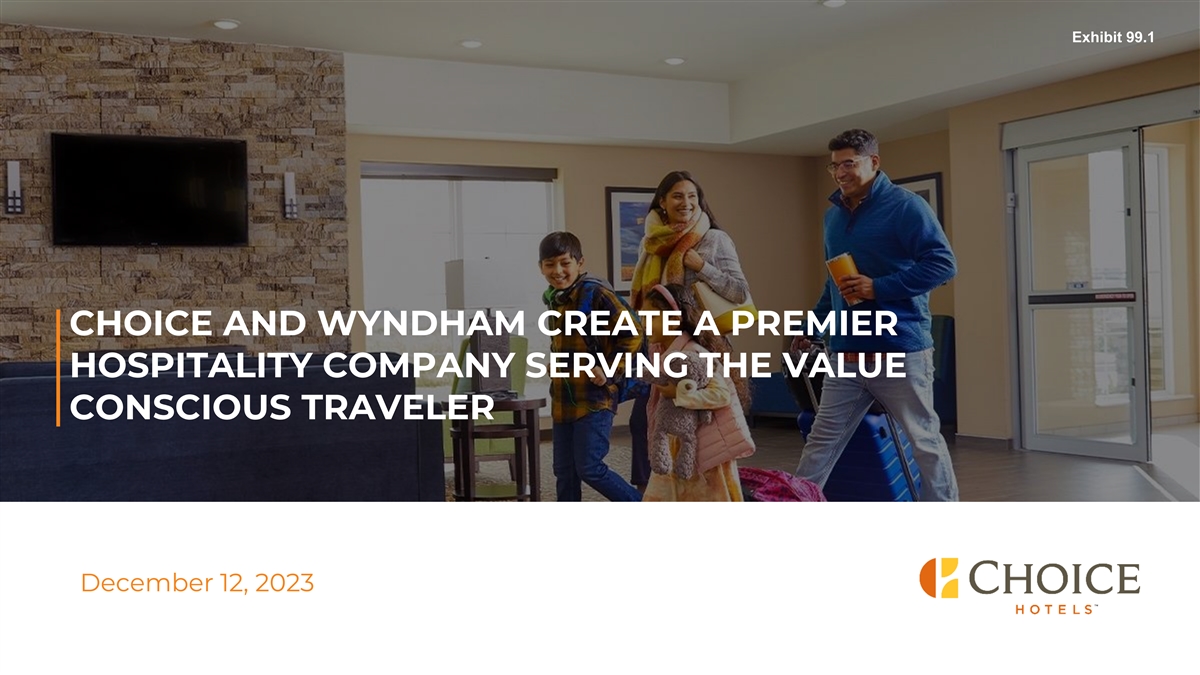 Exhibit 99.1 CHOICE AND WYNDHAM CREATE A PREMIER HOSPITALITY COMPANY SERVING THE VALUE CONSCIOUS TRAVELER December 12, 2023