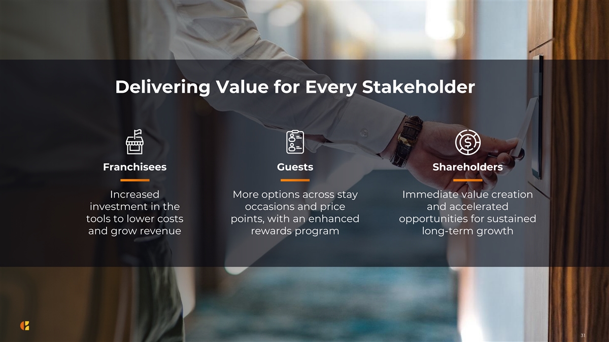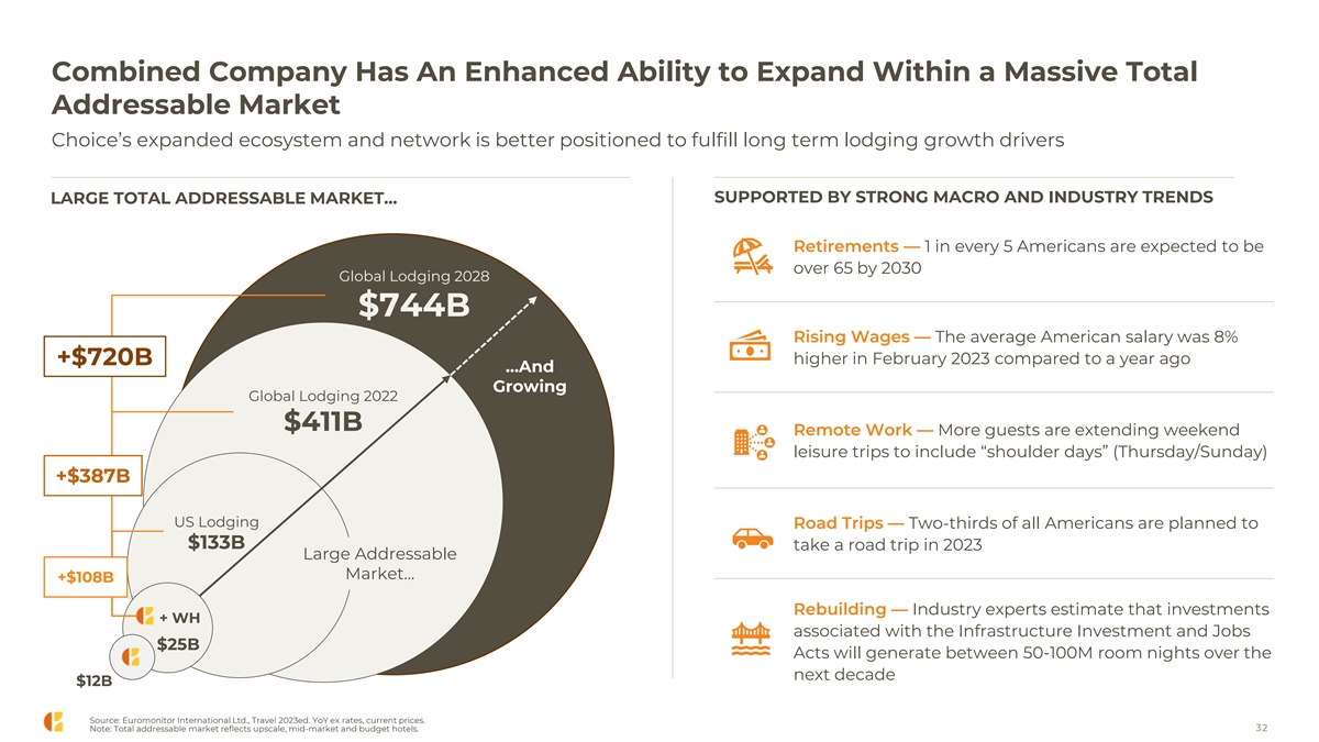 Delivering Value for Every Stakeholder Franchisees Guests Shareholders Increased More options across stay Immediate value creation investment in the occasions and price and accelerated tools to lower costs points, with an enhanced opportunities for sustained and grow revenue rewards program long-term growth 31