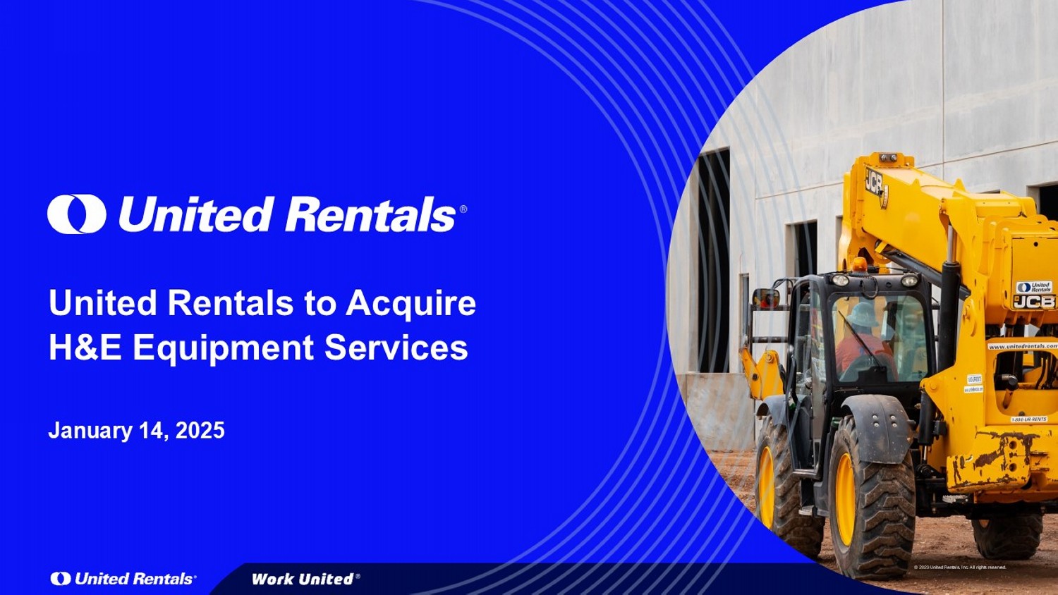 1 I © 2023 United Rentals, Inc. All rights reserved. United Rentals to Acquire H&E Equipment Services January 14, 2025