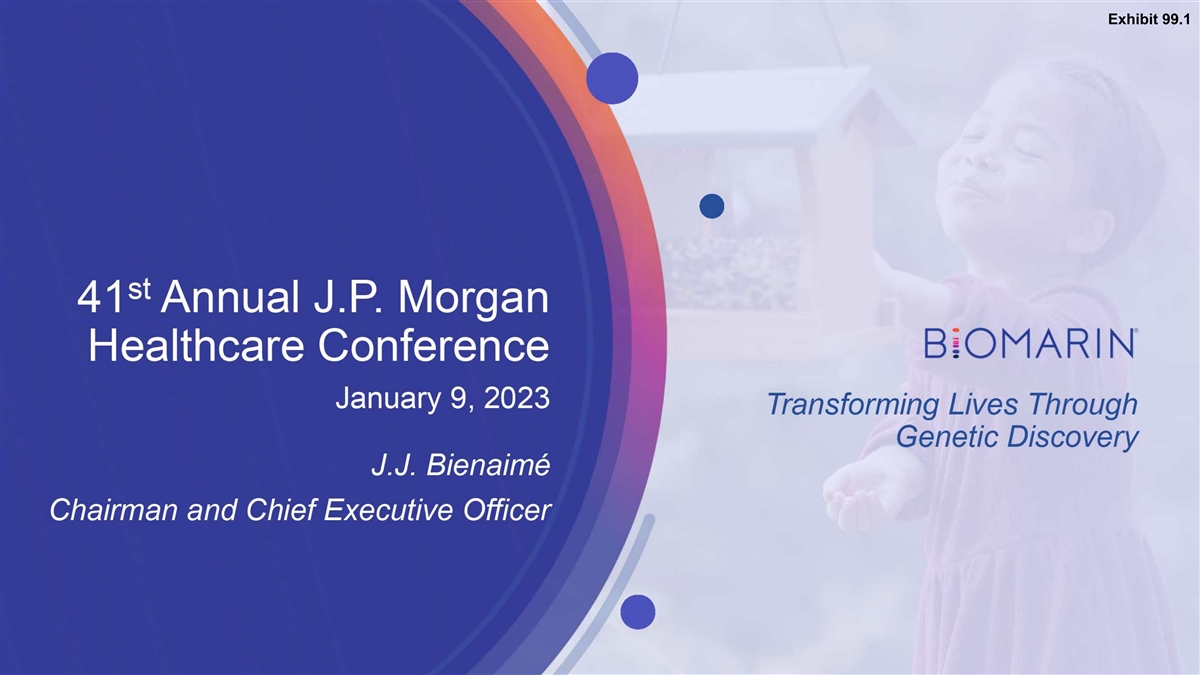 Exhibit 99.1 • 41st Annual J.P. Morgan ai0MARIN Healthcare Conference January 9, 2023 Transforming Lives Through Genetic Discovery J.J. Bienaime Chairman and Chief Executive Officer