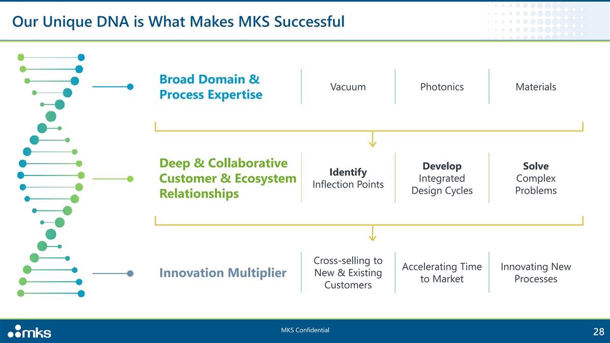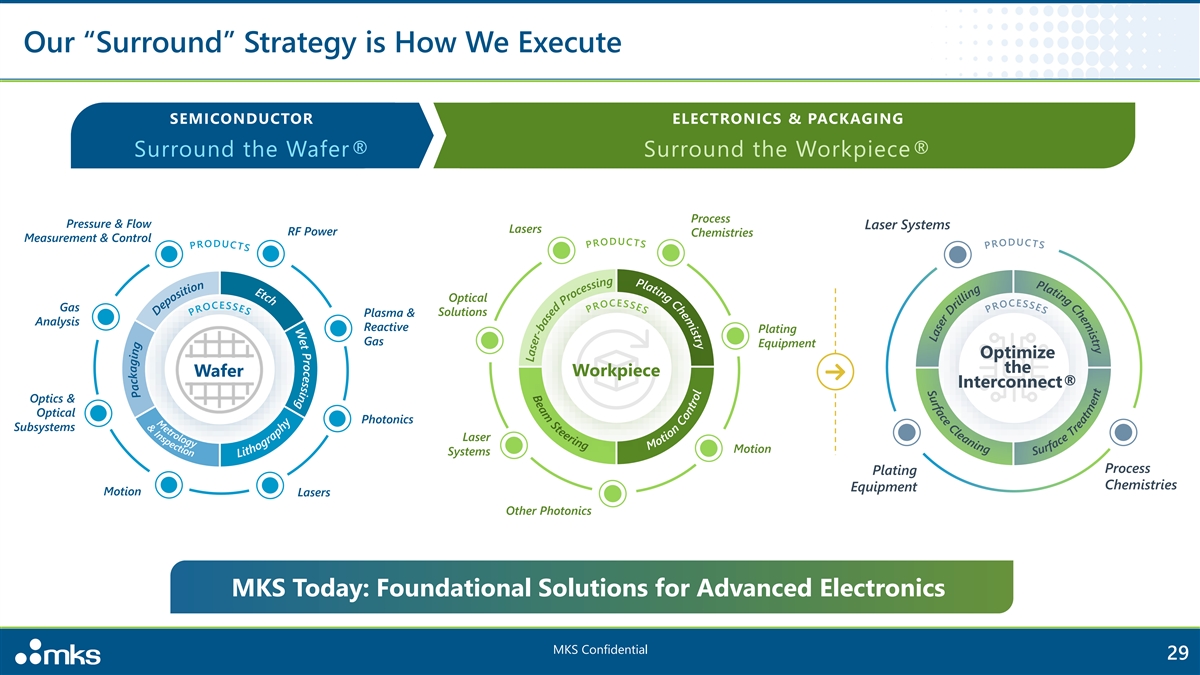 Our Unique DNA is What Makes MKS Successful Broad Domain & Vacuum Photonics Materials Process Expertise Deep & Collaborative Develop Solve Identify Integrated Complex Customer & Ecosystem Inflection Points Design Cycles Problems Relationships Cross-selling to Accelerating Time Innovating New New & Existing Innovation Multiplier to Market Processes Customers MKS Confidential 28