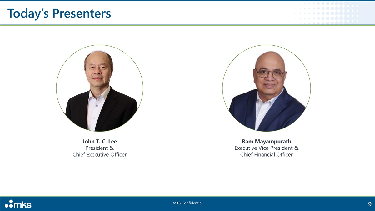 Today’s Presenters John T. C. Lee Ram Mayampurath President & Executive Vice President & Chief Executive Officer Chief Financial Officer MKS Confidential 9