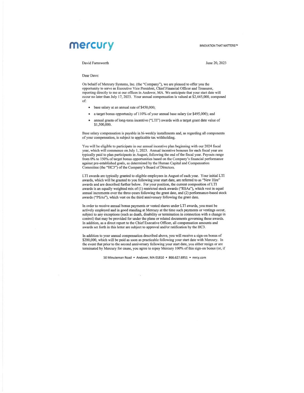 EX-10.1 2 davefarnsworthofferlette.htm EX-10.1 davefarnsworthofferlette