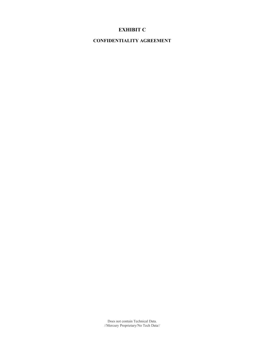 Does not contain Technical Data. //Mercury Proprietary/No Tech Data// EXHIBIT C CONFIDENTIALITY AGREEMENT