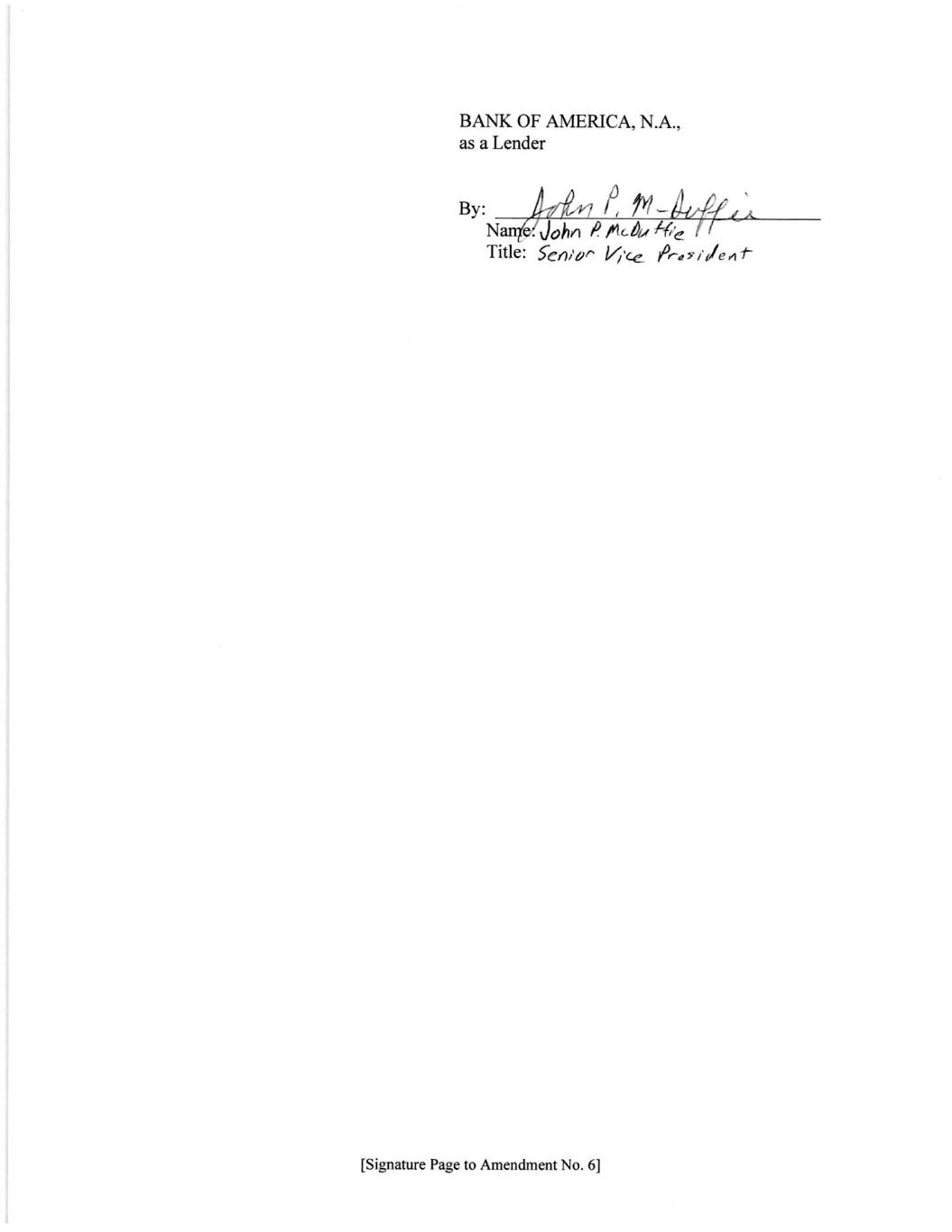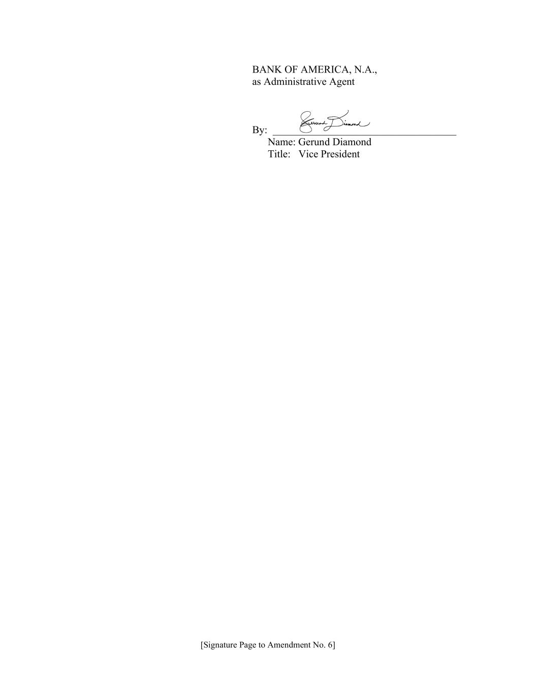 [Signature Page to Amendment No. 6] BANK OF AMERICA, N.A., as Administrative Agent By: ___________________________________ Name: Gerund Diamond Title: Vice President