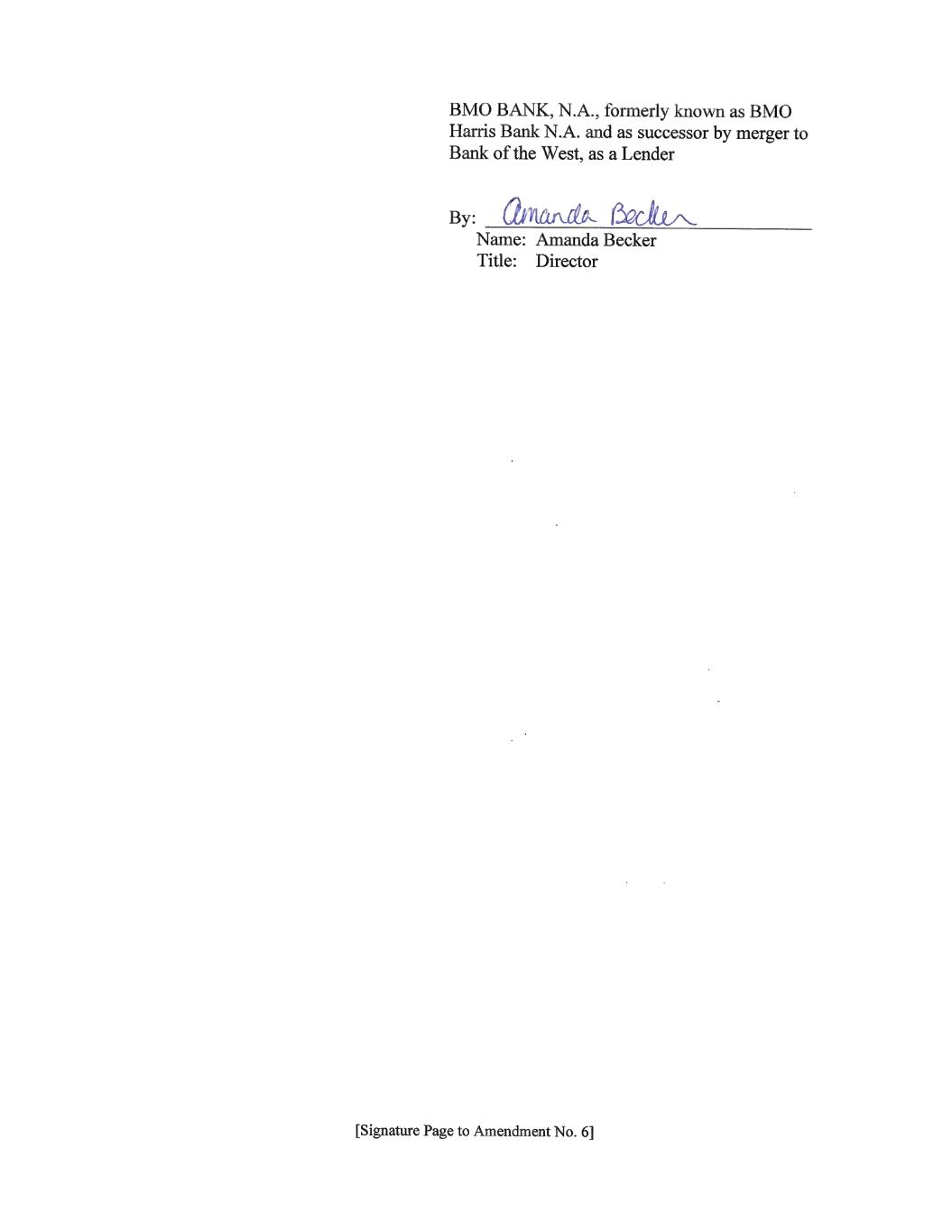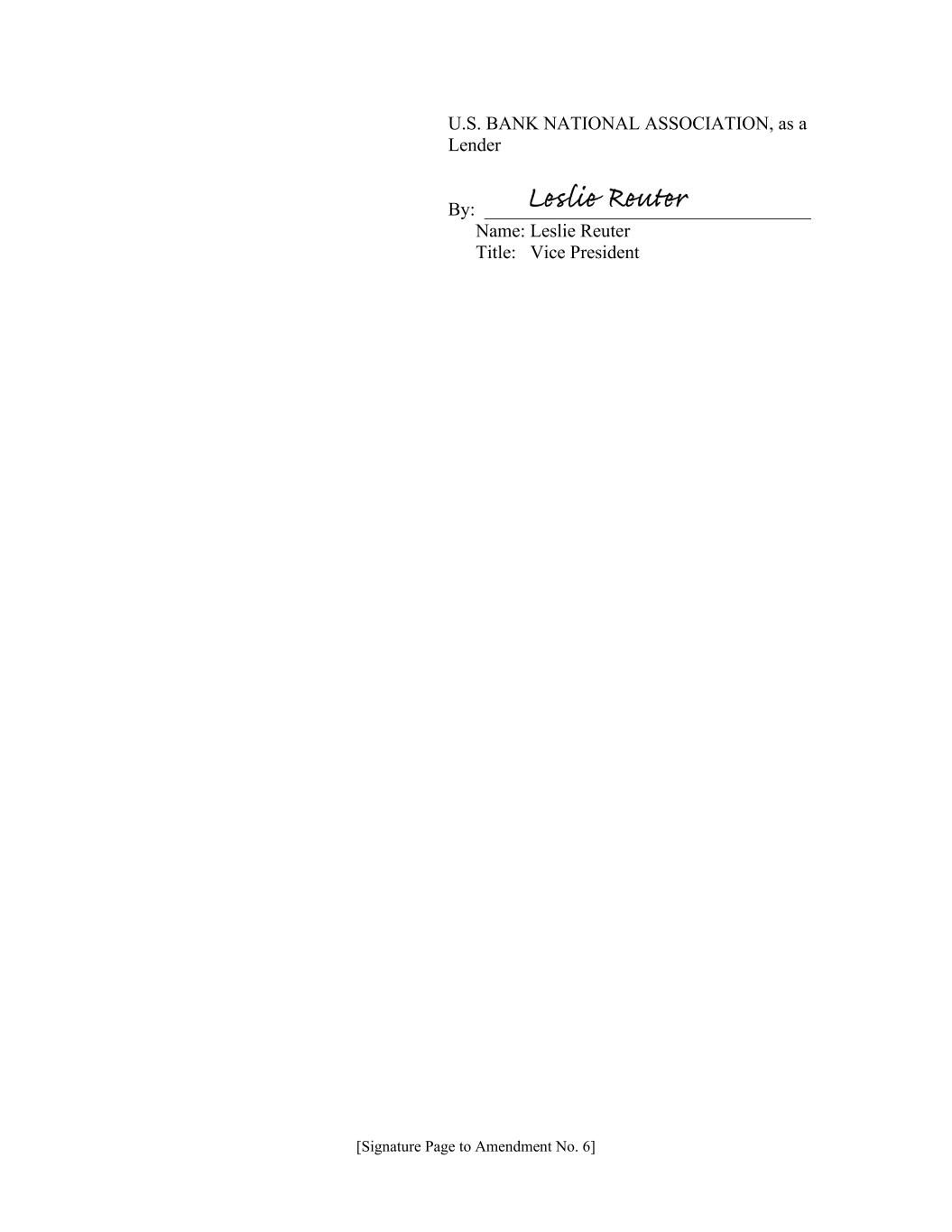 [Signature Page to Amendment No. 6] U.S. BANK NATIONAL ASSOCIATION, as a Lender By: ___________________________________ Name: Leslie Reuter Title: Vice President