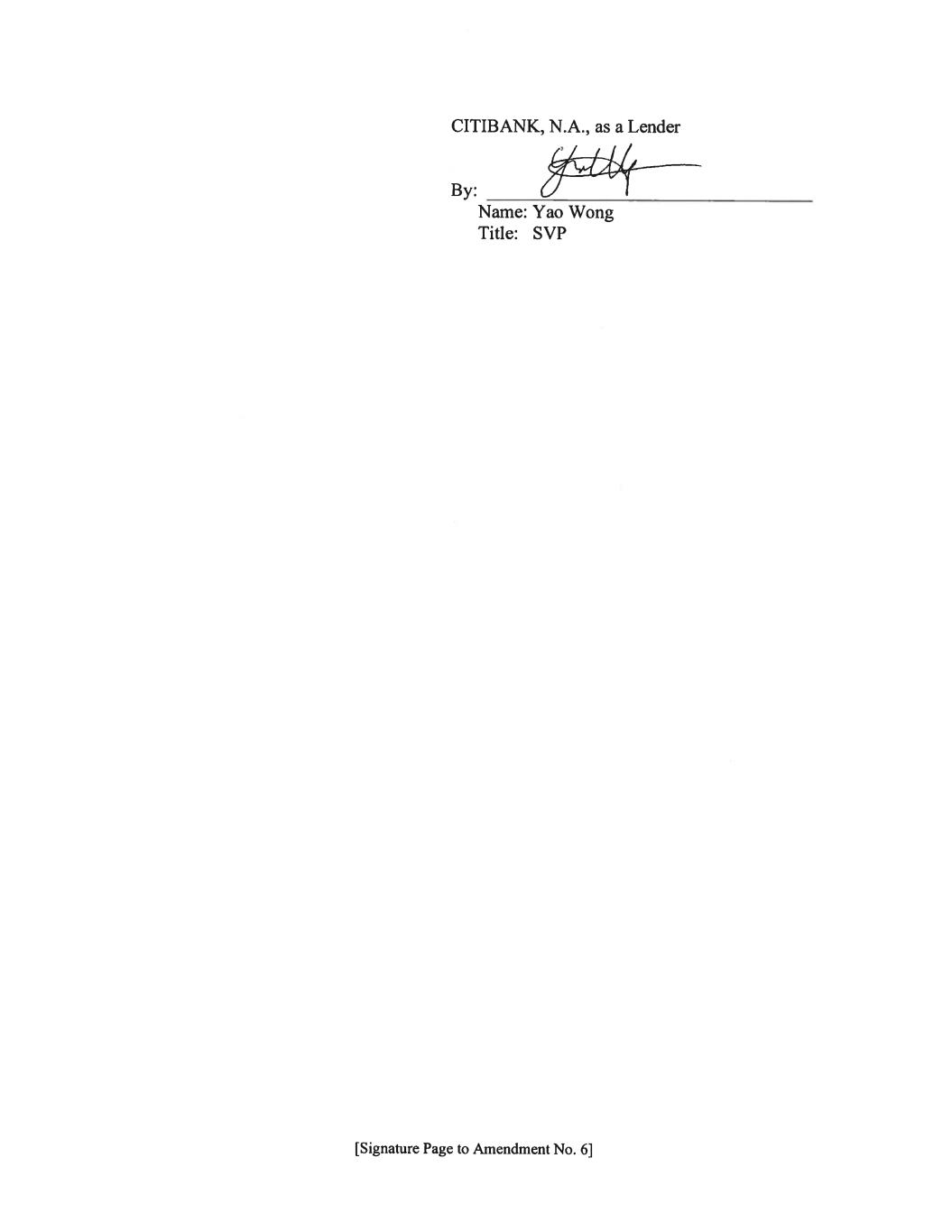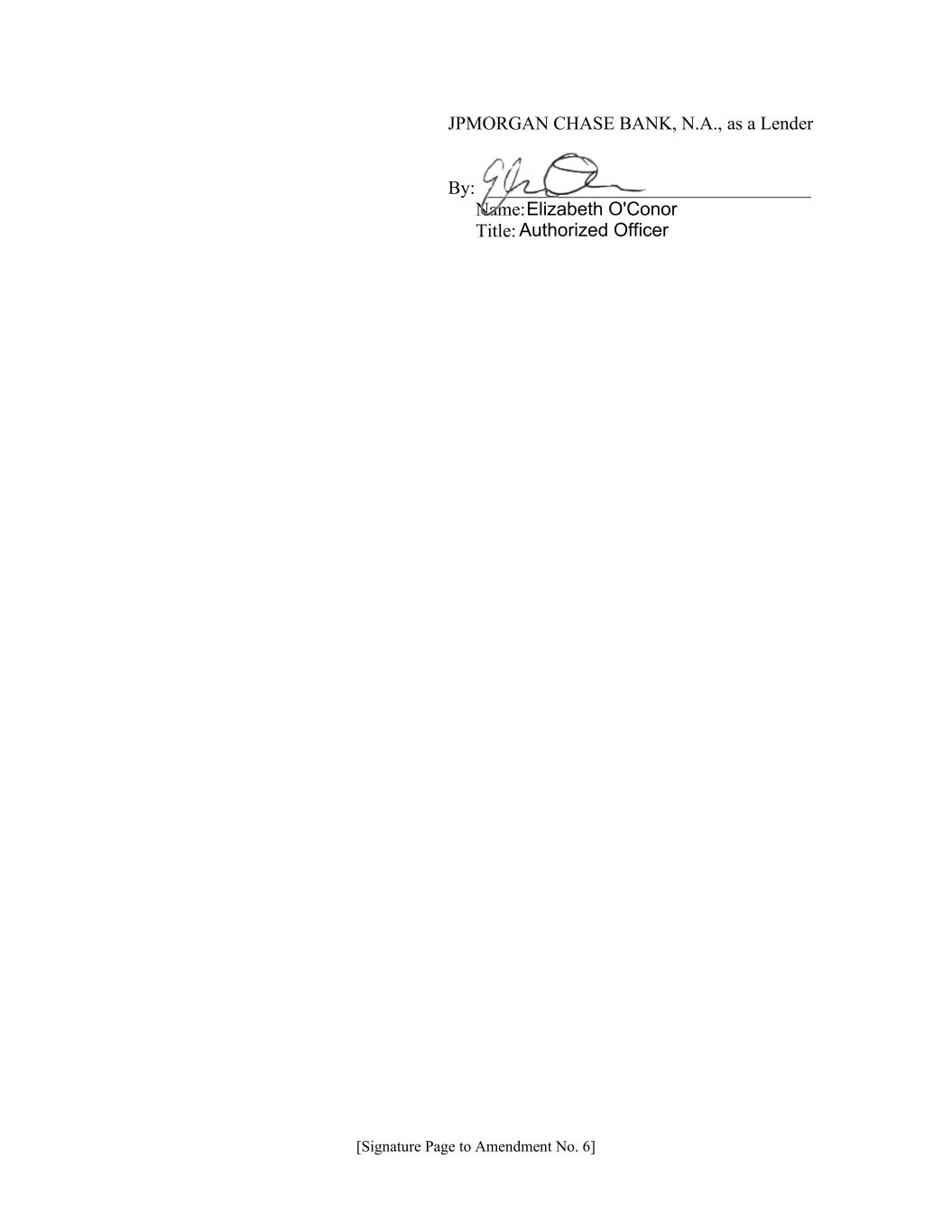 [Signature Page to Amendment No. 6] JPMORGAN CHASE BANK, N.A., as a Lender By: ___________________________________ Name: Title: Elizabeth O'Conor Authorized Officer