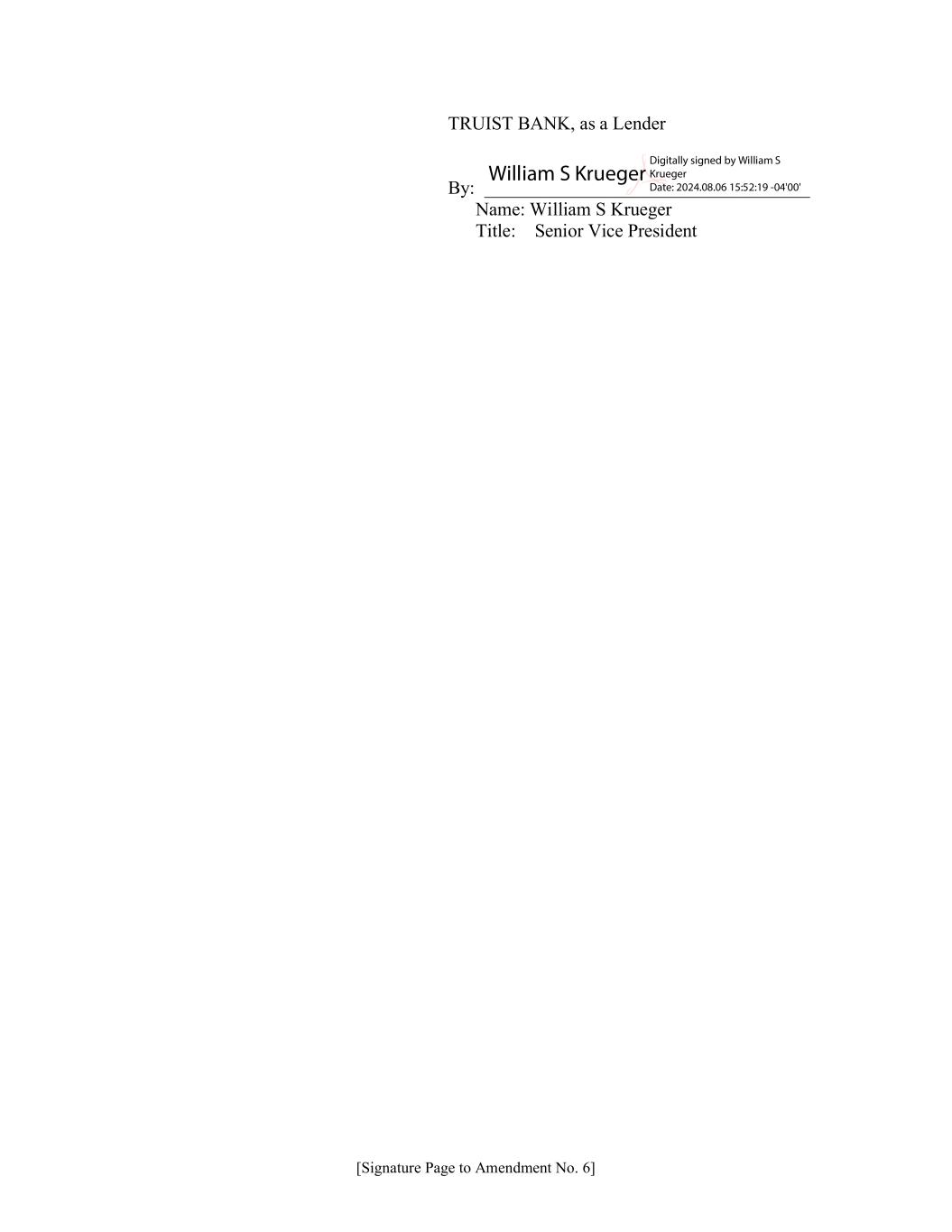 [Signature Page to Amendment No. 6] TRUIST BANK, as a Lender By: ___________________________________ Name: William S Krueger Title: Senior Vice President William S Krueger Digitally signed by William S Krueger Date: 2024.08.06 15:52:19 -04'00'