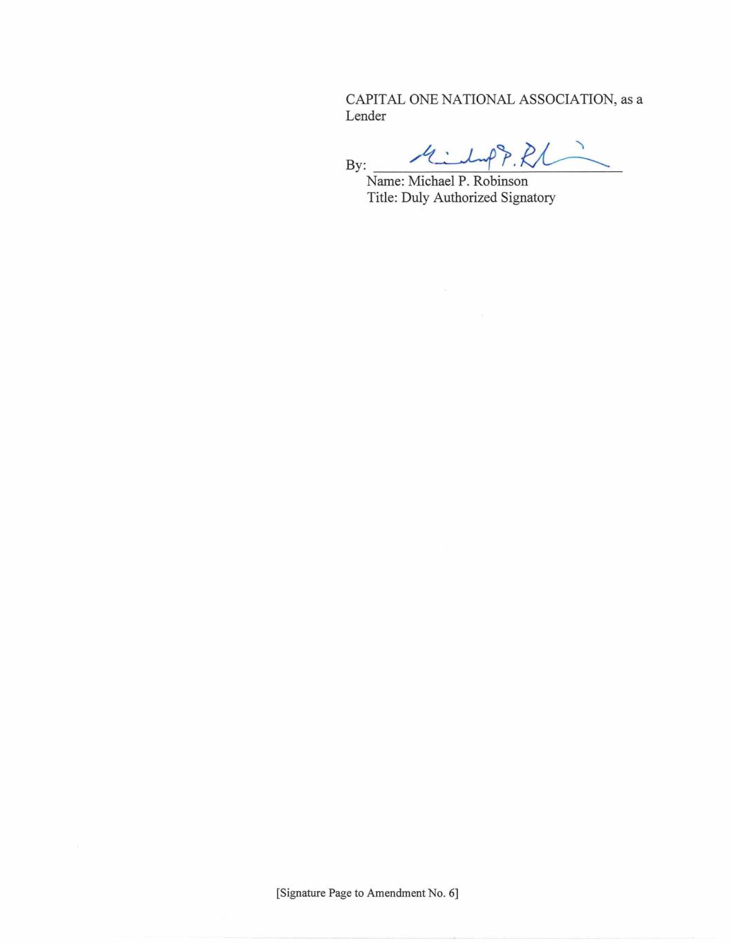 [Signature Page to Amendment No. 6] Wells Fargo Bank, N.A., as a Lender By: ___________________________________ Name: Chris Mandonas Title: Executive Director