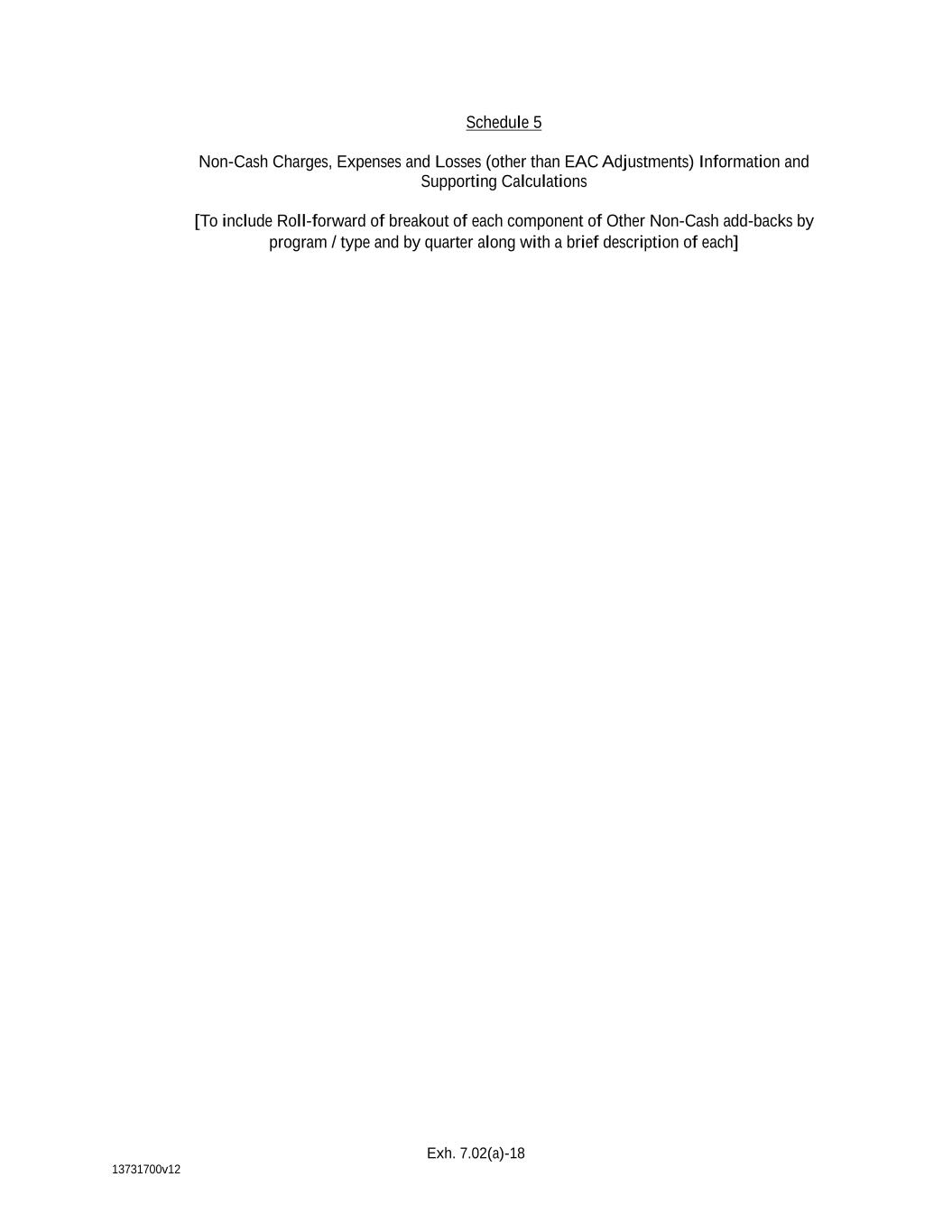 Exh. 7.02(a)-18 13731700v12 Schedule 5 Non-Cash Charges, Expenses and Losses (other than EAC Adjustments) Information and Supporting Calculations [To include Roll-forward of breakout of each component of Other Non-Cash add-backs by program / type and by quarter along with a brief description of each]