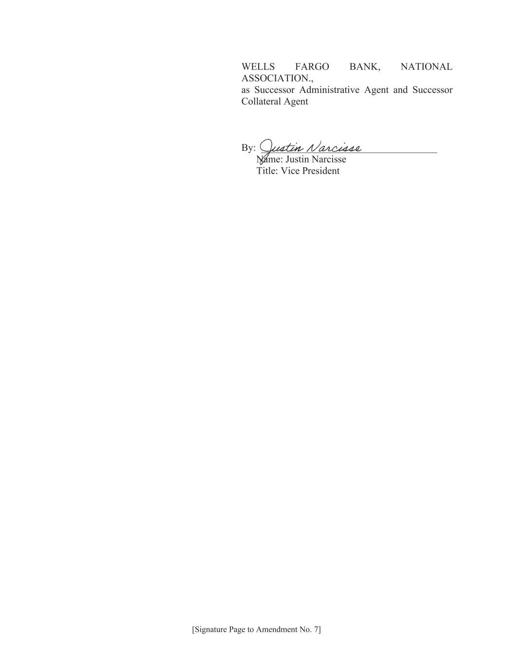 [Signature Page to Amendment No. 7] WELLS FARGO BANK, NATIONAL ASSOCIATION., as Successor Administrative Agent and Successor Collateral Agent By: ___________________________________ Name: Justin Narcisse Title: Vice President