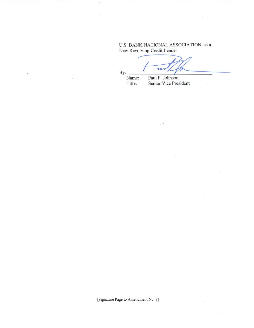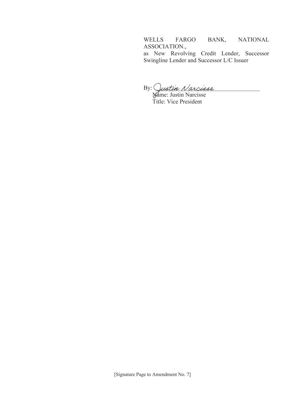 [Signature Page to Amendment No. 7] WELLS FARGO BANK, NATIONAL ASSOCIATION., as New Revolving Credit Lender, Successor Swingline Lender and Successor L/C Issuer By: ___________________________________ Name: Justin Narcisse Title: Vice President