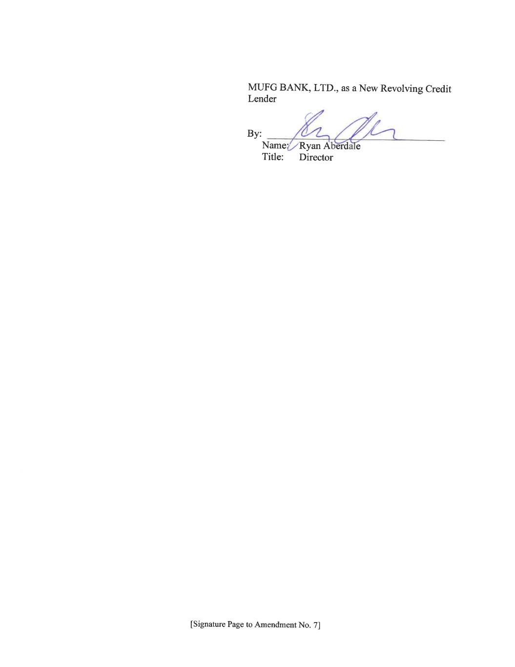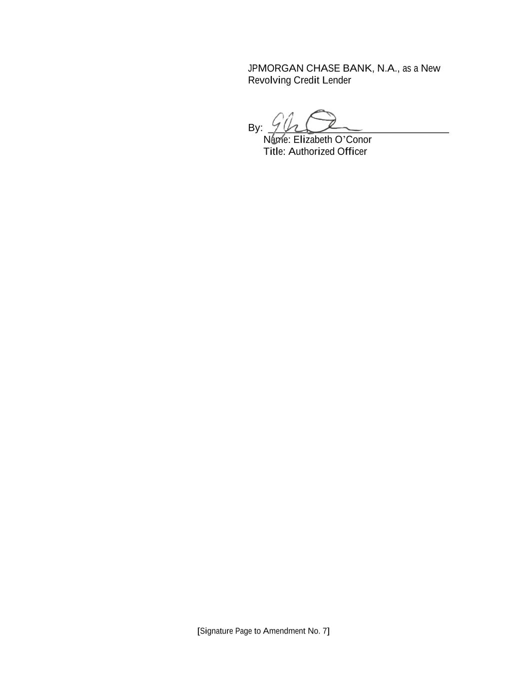[Signature Page to Amendment No. 7] JPMORGAN CHASE BANK, N.A., as a New Revolving Credit Lender By: ___________________________________ Name: Elizabeth O’Conor Title: Authorized Officer