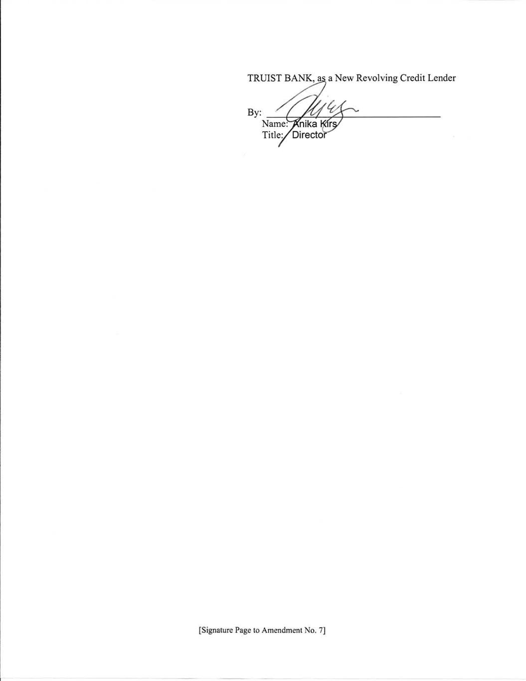 [Signature Page to Amendment No. 7] Citibank, N.A. as a New Revolving Credit Lender By: ___________________________________ Name: Robert Robin Title: Senior Vice President Docusign Envelope ID: 998425D7-D957-4A65-AC4C-E77AAF90CE3B