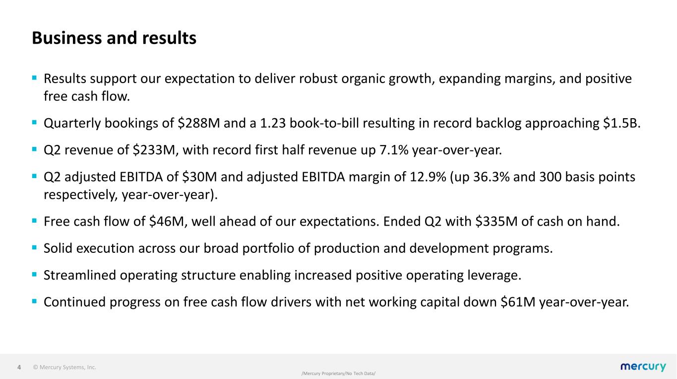 © Mercury Systems, Inc. /Mercury Proprietary/No Tech Data/ Today’s call  Opening remarks on business and results  Update on our four priorities  Performance expectations for FY26 and beyond  Q&A 3