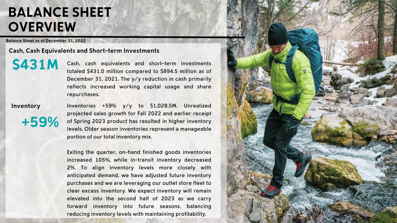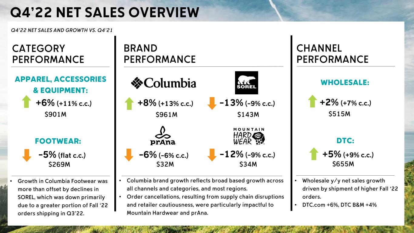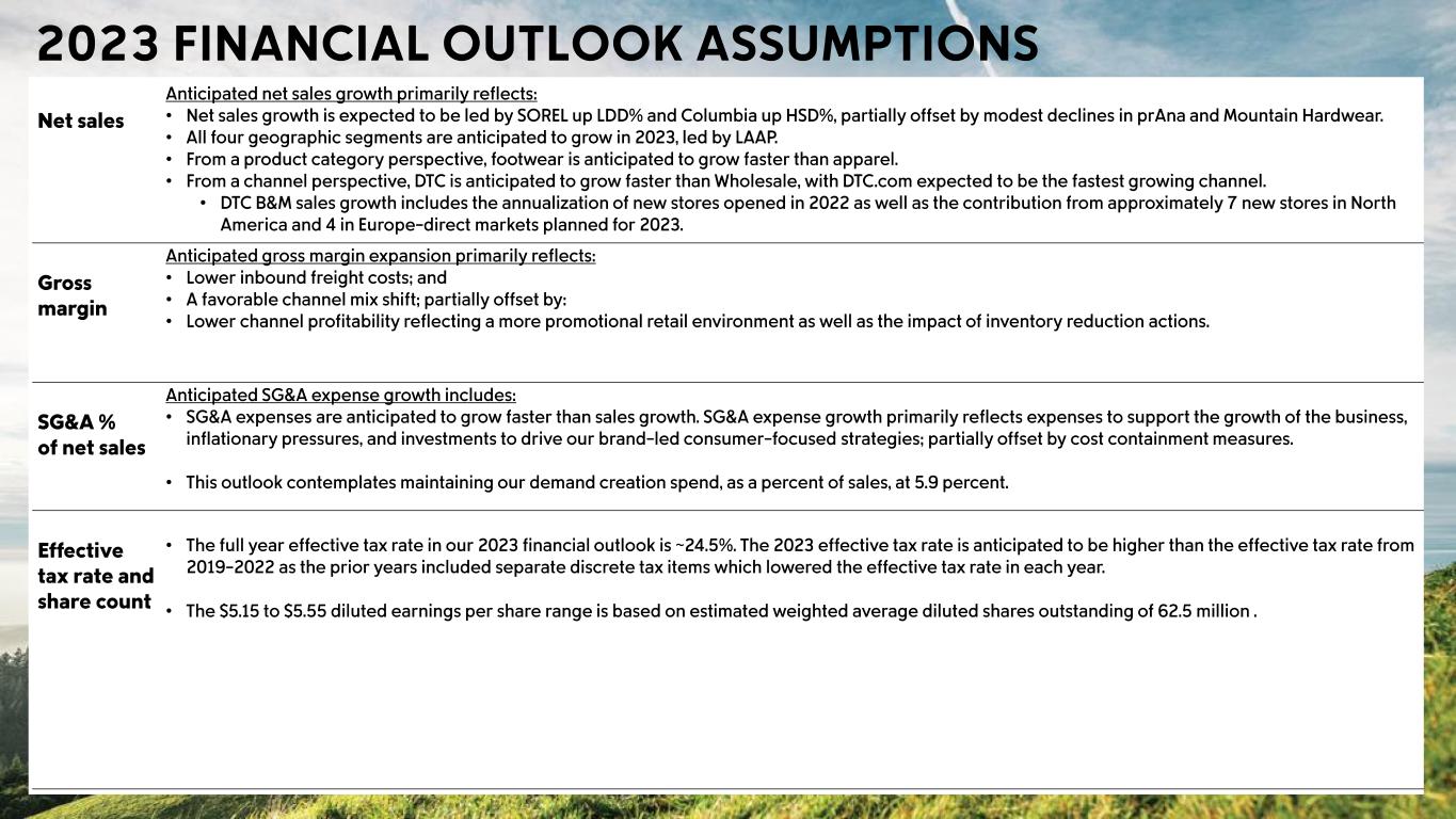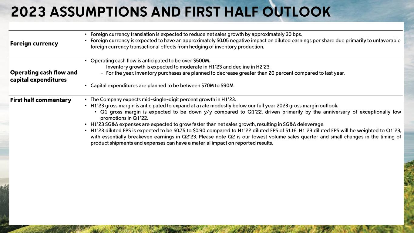 Headwinds • Channel Profitability: lower DTC margins driven by higher promotional activity, compared to exceptionally low promotions in Q4’21, and increased outbound freight costs; and to a lesser extent • Channel Profitability: lower wholesale margins driven by a higher proportion of off price versus full price sales, and lower margins on those off-price sales Tailwinds • Channel & Region Sales Mix: a higher proportion of DTC sales, partially offset by a shift towards lower margin regions