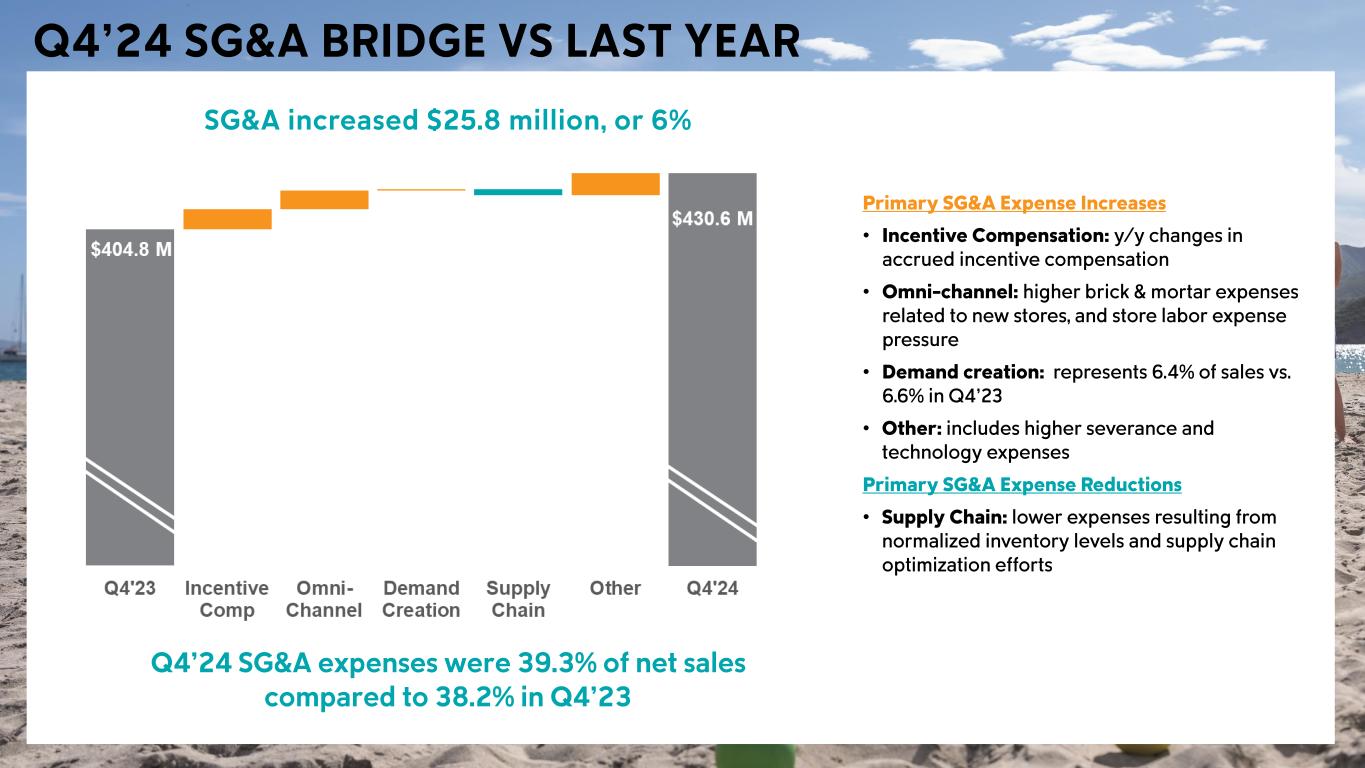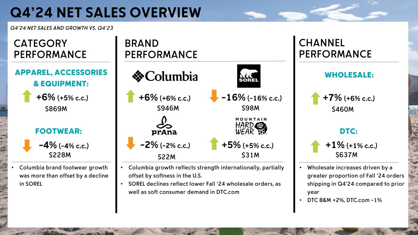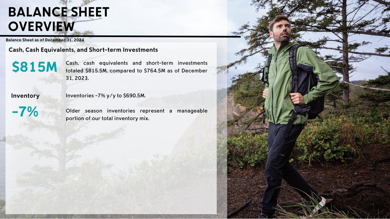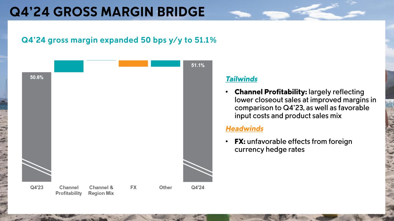 • • • (dollars in millions, except per share amounts) Q4'24 Q4'23 Change Net Sales $1,096.6 $1,060.0 +3% Gross margin 51.1% 50.6% +50 bps SG&A percent of net sales 39.3% 38.2% +110 bps Operating income $137.3 $113.1 +21% Operating margin 12.5% 10.7% +180 bps Net income $102.6 $93.3 +10% Diluted EPS $1.80 $1.55 +16%
