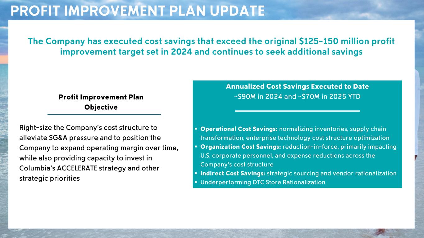 • • • • (dollars in millions, except per share amounts) Q2'25 Q2'24 Change Net Sales $605.2 $570.2 +6% Gross margin 49.1% 47.9% +120 bps SG&A percent of net sales 53.8% 53.1% +70 bps Operating loss ($23.6) ($23.8) +1% Operating margin -3.9% -4.2% +30 bps Net loss ($10.2) ($11.7) +13% Diluted EPS ($0.19) ($0.20) +5%