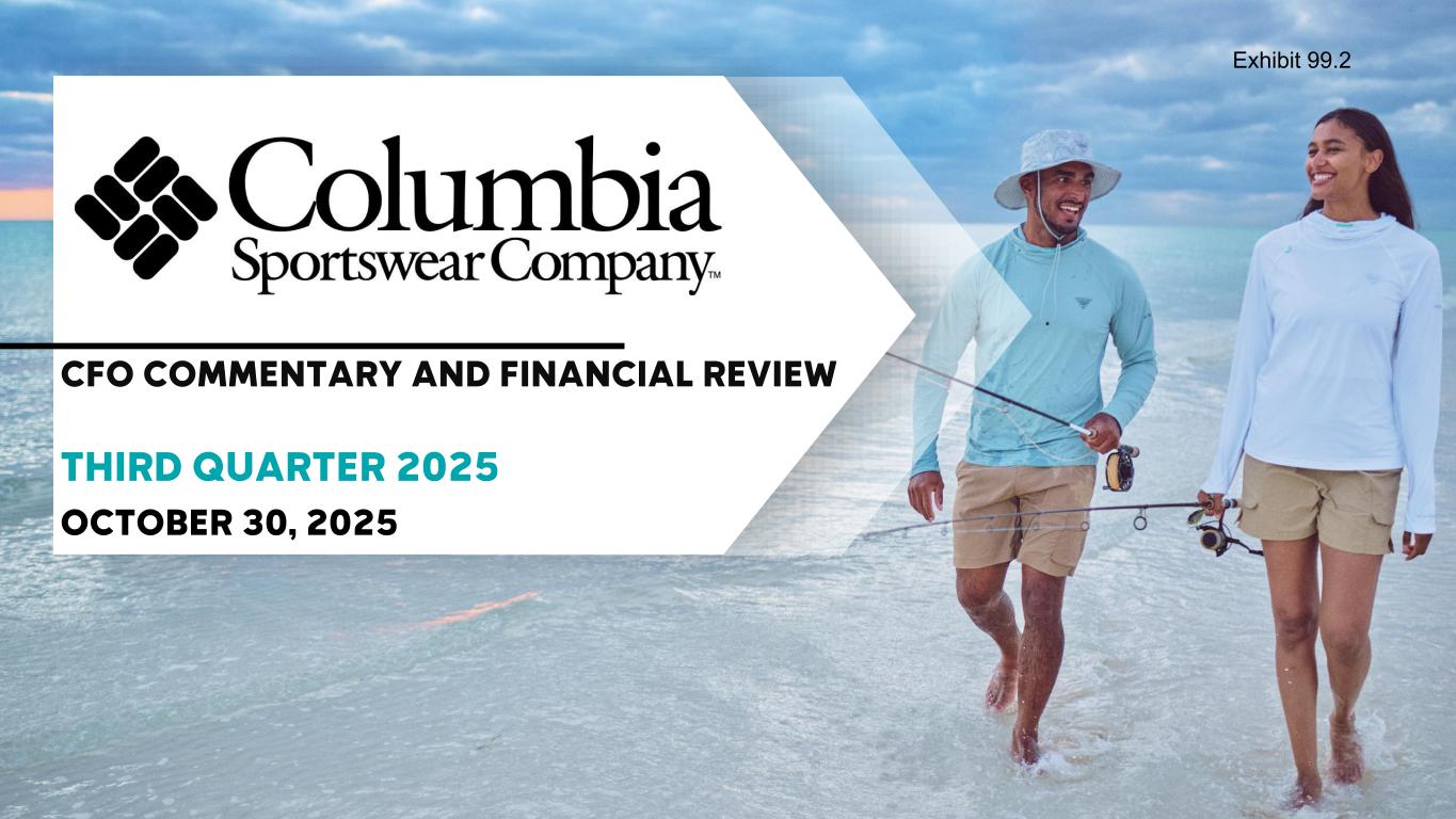 This presentation does not constitute an offer or invitation for the sale or purchase of securities and has been prepared solely for informational purposes . This presentation contains forward - looking statements within the meaning of the federal securities laws regarding Columbia Sportswear Company’s business opportunities and anticipated results of operations . Forward - looking statements generally relate to future events or our future financial or operating performance . In some cases, you can identify forward - looking statements because they contain words such as “may,” “might,” “will,” “would,” “should,” “expect,” “plan,” “anticipate,” “could,” “intend,” “target,” “project,” “contemplate,” “believe,” “estimate,” “predict,” “likely,” “potential” or “continue” or the negative of these words or other similar terms or expressions that concern our expectations, strategy, plans or intentions . Unless the context indicates otherwise, the terms "we," "us," "our," "the Company," and "Columbia" refer to Columbia Sportswear Company, together with its wholly owned subsidiaries and entities in which it maintains a controlling financial interest . The Company's expectations, beliefs and projections are expressed in good faith and are believed to have a reasonable basis ; however, each forward - looking statement involves a number of risks and uncertainties, including those set forth in this document, those described in the Company's Annual Report on Form 10 - K and Quarterly Reports on Form 10 - Q under the heading "Risk Factors," and those that have been or may be described in other reports filed by the Company, including reports on Form 8 - K. Potential risks and uncertainties that may affect our future revenues, earnings and performance and could cause the actual results of operations or financial condition of the Company to differ materially from the anticipated results expressed or implied by forward - looking statements in this document include : loss of key customer accounts ; our ability to execute the ACCELERATE Growth Strategy ; our ability to execute and realize costs savings related to our Profit Improvement Plan ; our ability to effectively execute our business strategies, including initiatives to upgrade our business processes and information technology (“IT”) systems and investments in our DTC businesses ; our ability to maintain the strength and security of our IT systems ; the effects of unseasonable weather, including global climate change ; the seasonality of our business and timing of orders ; trends affecting consumer spending, including changes in the level of consumer spending, and retail traffic patterns ; unfavorable economic conditions generally ; the financial health of our customers and retailer consolidation ; higher than expected rates of order cancellations ; changes affecting consumer demand and preferences and fashion trends ; changes in international, federal or state tax, labor and other laws and regulations that affect our business, including changes in corporate tax rates, tariffs, international trade policy and geopolitical tensions, or increasing wage rates ; our ability to attract and retain key personnel ; risks inherent in doing business in foreign markets, including fluctuations in currency exchange rates, global credit market conditions, changes in global regulation and economic and political conditions and disease outbreaks ; volatility in global production and transportation costs and capacity and timing ; our ability to effectively manage our inventory and our wholesale customers' to manage their inventories ; our dependence on third - party manufacturers and suppliers and our ability to source at competitive prices from them or at all ; the effectiveness of our sales and marketing efforts ; business disruptions and acts of terrorism, cyber - attacks or military activities around the globe ; intense competition in the industry ; our ability to establish and protect our intellectual property ; and our ability to develop innovative products . The Company cautions that forward - looking statements are inherently less reliable than historical information . New risks and uncertainties emerge from time to time and it is not possible for the Company to predict all risks and uncertainties that could have an impact on the forward - looking statements contained in this presentation . Nothing in this presentation should be regarded as a representation by any person that the forward - looking statements set forth herein will be achieved or that any of the contemplated results of such forward - looking statements will be achieved . You should not place undue reliance on forward - looking statements, which speak only as of the date they are made . We do not undertake any duty to update any of the forward - looking statements after the date of this document to conform the forward - looking statements to actual results or to changes in our expectations . FORWARD - LOOKING STATEMENTS